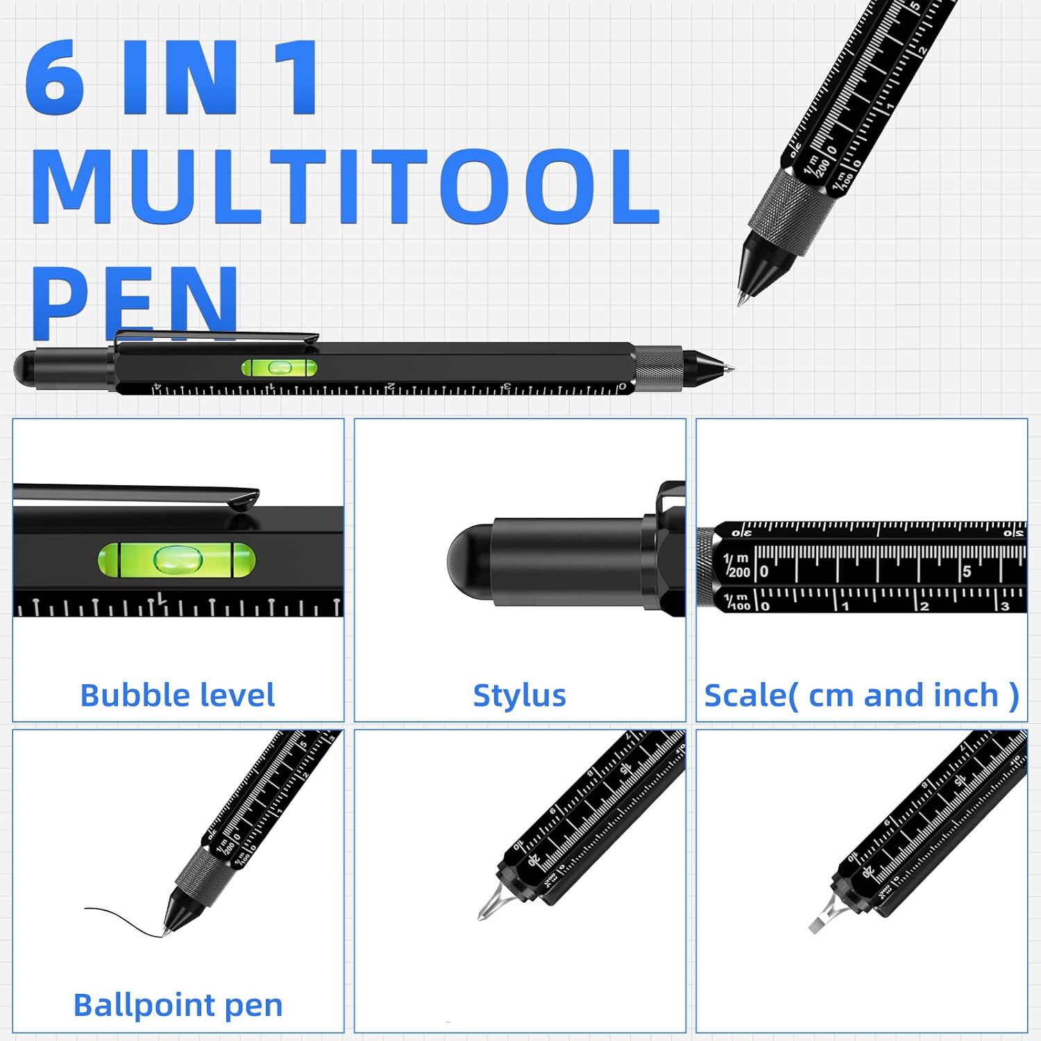 【9-in-1 Multi-Tool Pen】Features 9 functions: retractable ballpoint pen, LED flashlight, cm/inch ruler, bubble level, assembly and disassembly tools (flat & Phillips), stylus, bottle opener/phone stand.