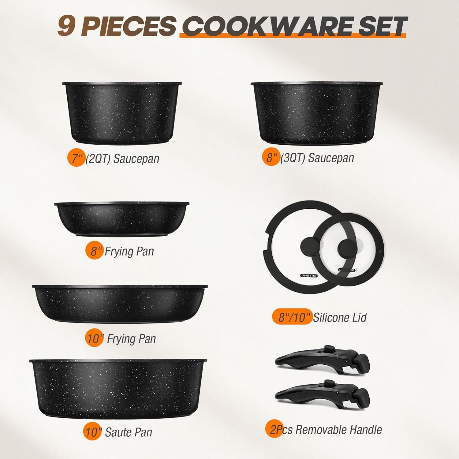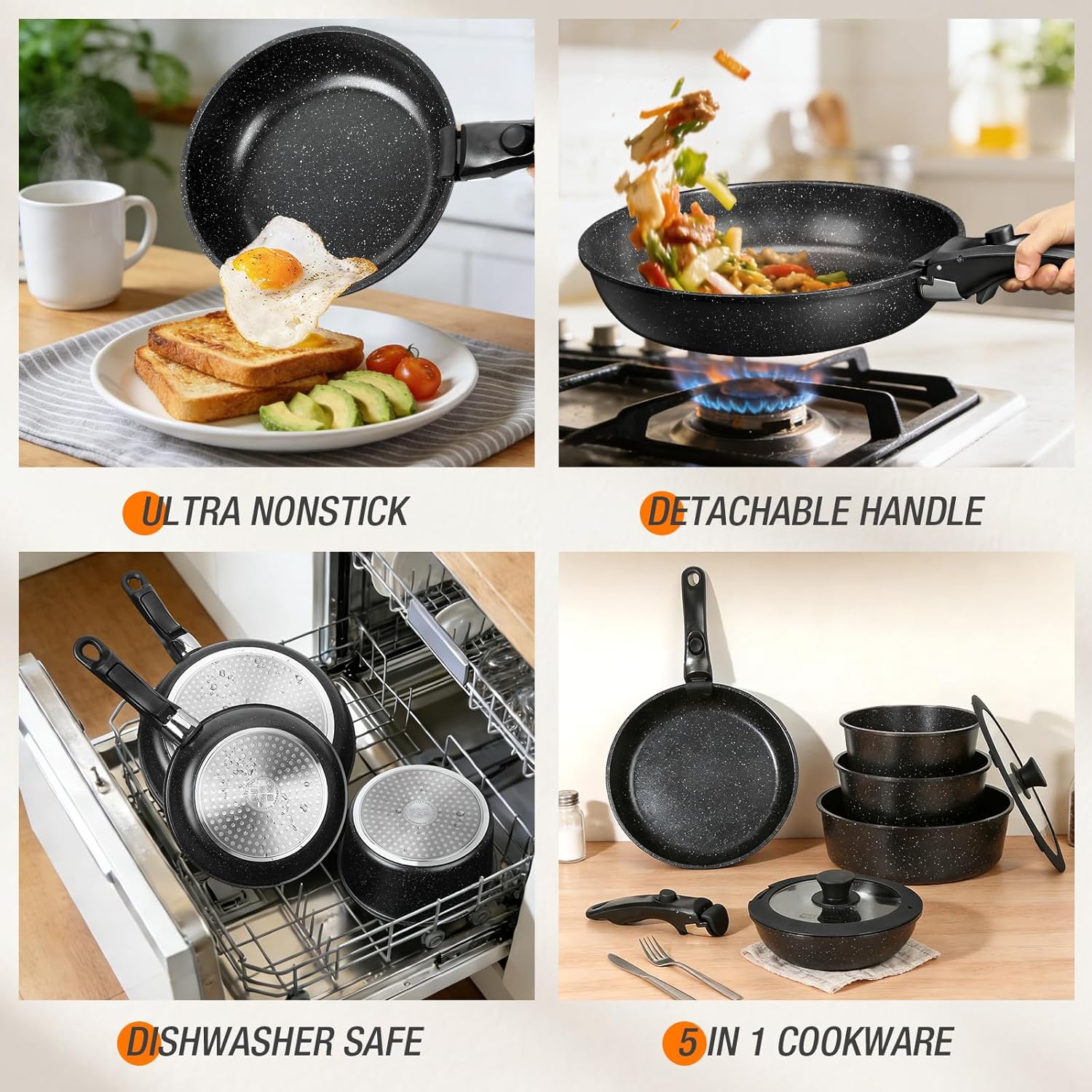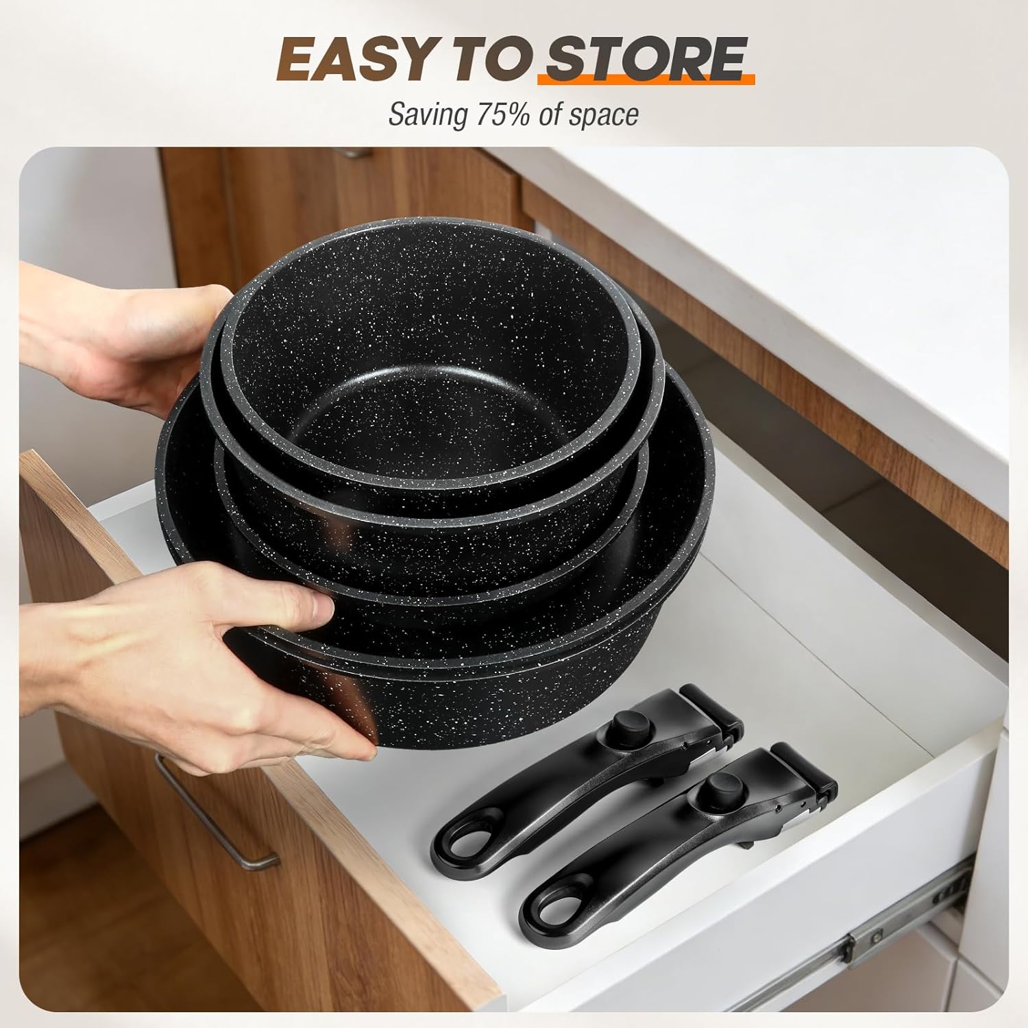 Best storage:Stackable pots and pans and detachable handles save up to 70% space and can be stored in a cupboard or RV. Keep pots and pans neatly stacked in cabinets or drawers; Suitable for compact Spaces, RVS and campers.