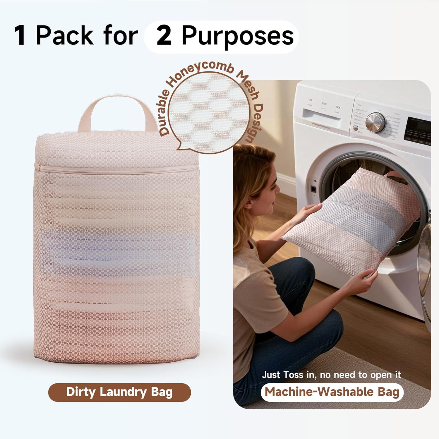 Wash & Go Laundry Bag: Just toss dirty clothes in, then place the whole bag in the washer. The tough honeycomb fabric stands up to repeat washes, while washing in-bag helps reduce snags and tangles