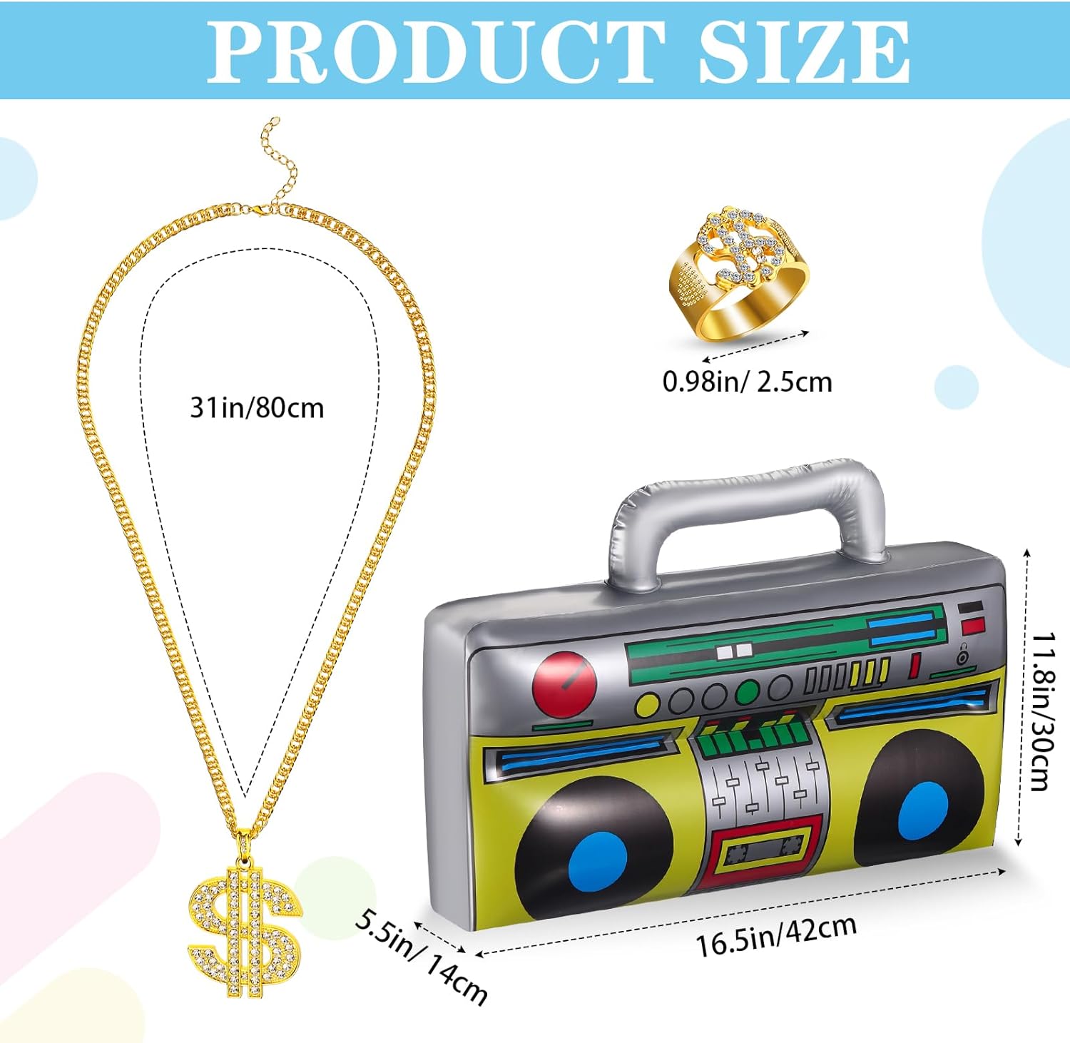 The chain and ring in the hip hop outfits for women are made of quality material in gold color, which will ensure solidity and sturdiness. The shine and beautiful looks with dollar sign designs make them match with your outfits easily.