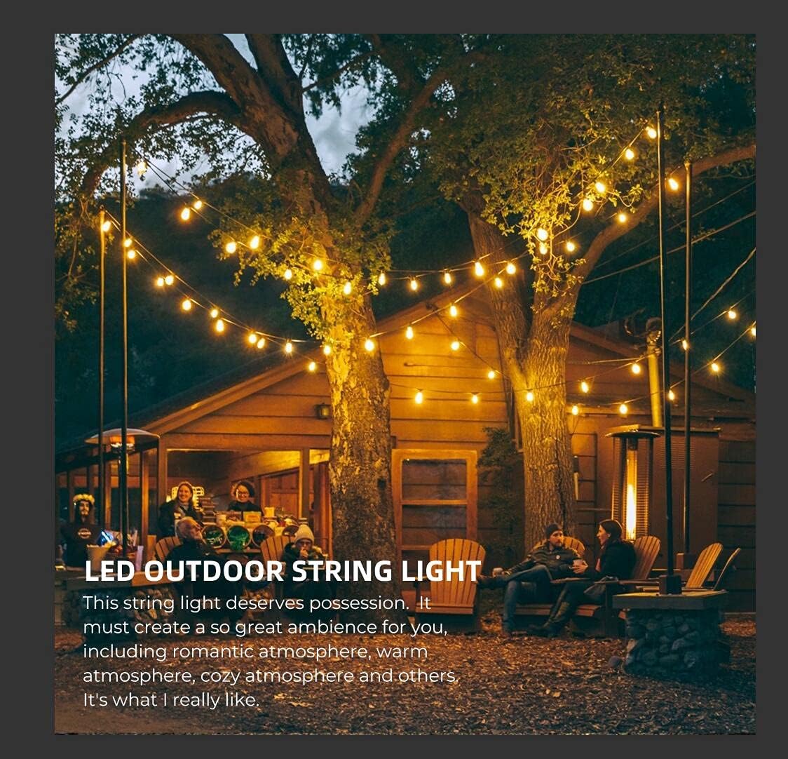 Weatherproof and Shatterproof Durability: Rated IP65 waterproof, these outdoor string lights withstand rain, sun, wind, snow, and extreme temperatures. The shatterproof plastic bulbs ensure safety and durability in harsh environments, making them ideal for outdoor use. Designed to resist breakage, even in high-impact situations, these lights provide reliable performance no matter the conditions