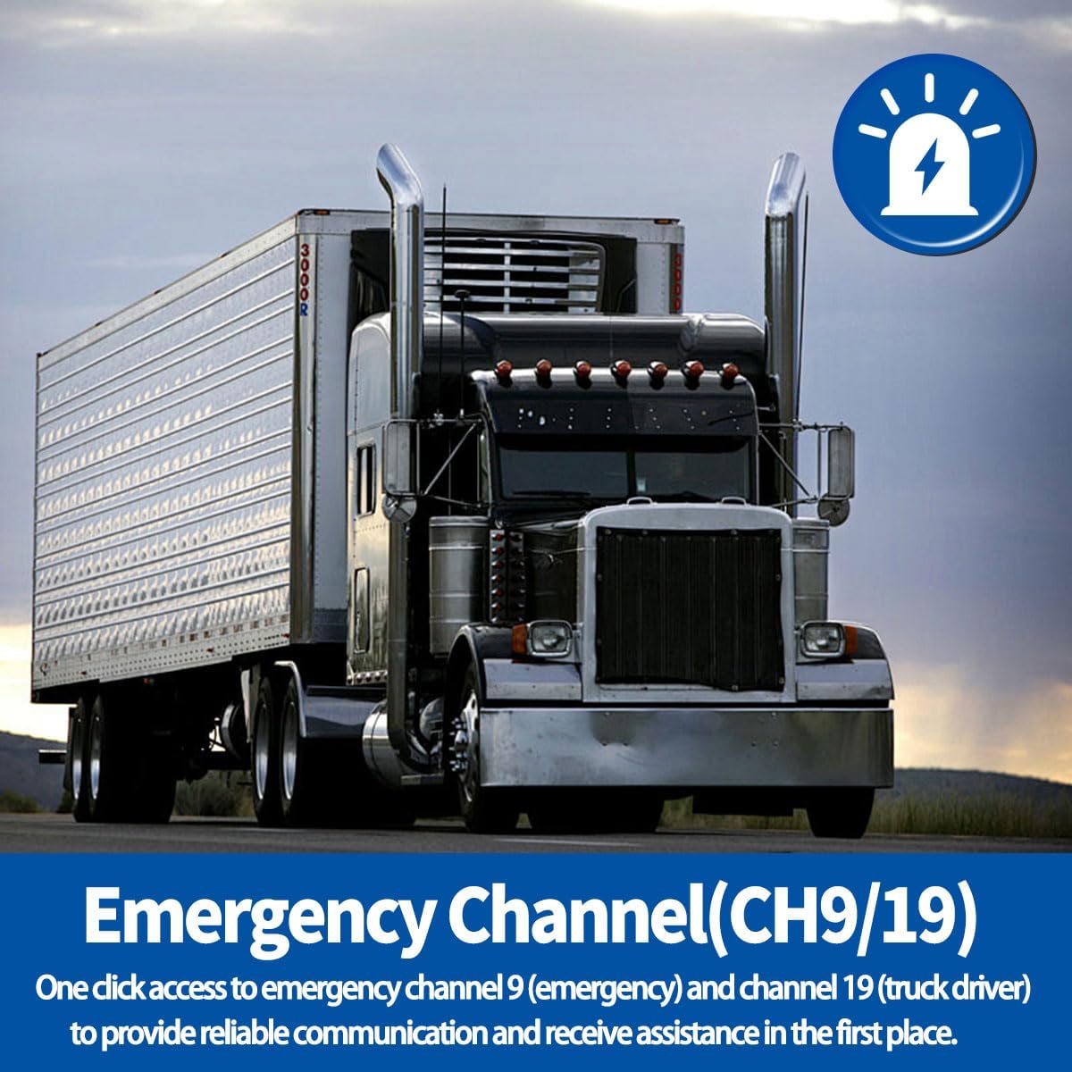 Emergency Radio:One click access to emergency channel 9 (emergency) and channel 19 (truck driver) to provide reliable communication and receive assistance in the first place.