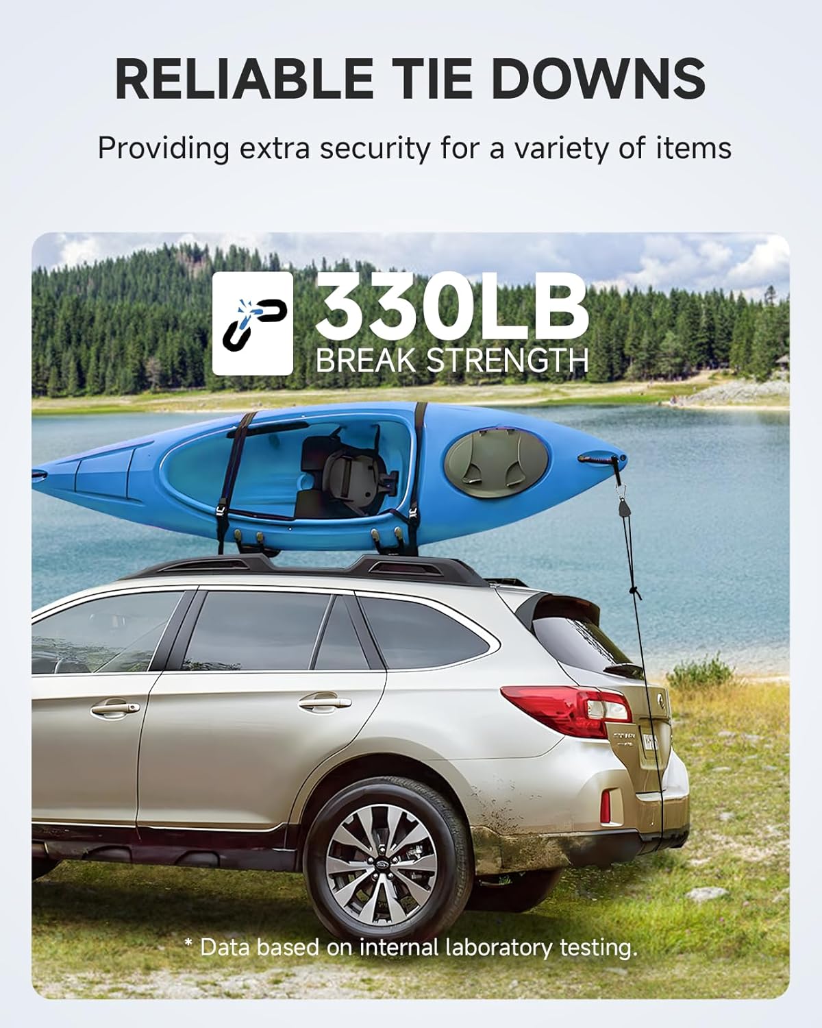 Built to Last: Designed with reinforced metal hooks, a sturdy ratchet, a reliable release lever, and a braided PP rope with a 330 lb break strength; This robust construction minimizes the risk of rust and ensures long-lasting performance