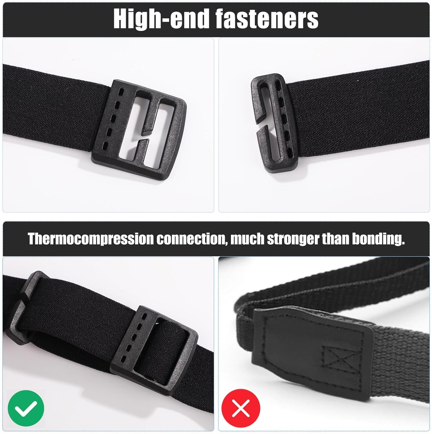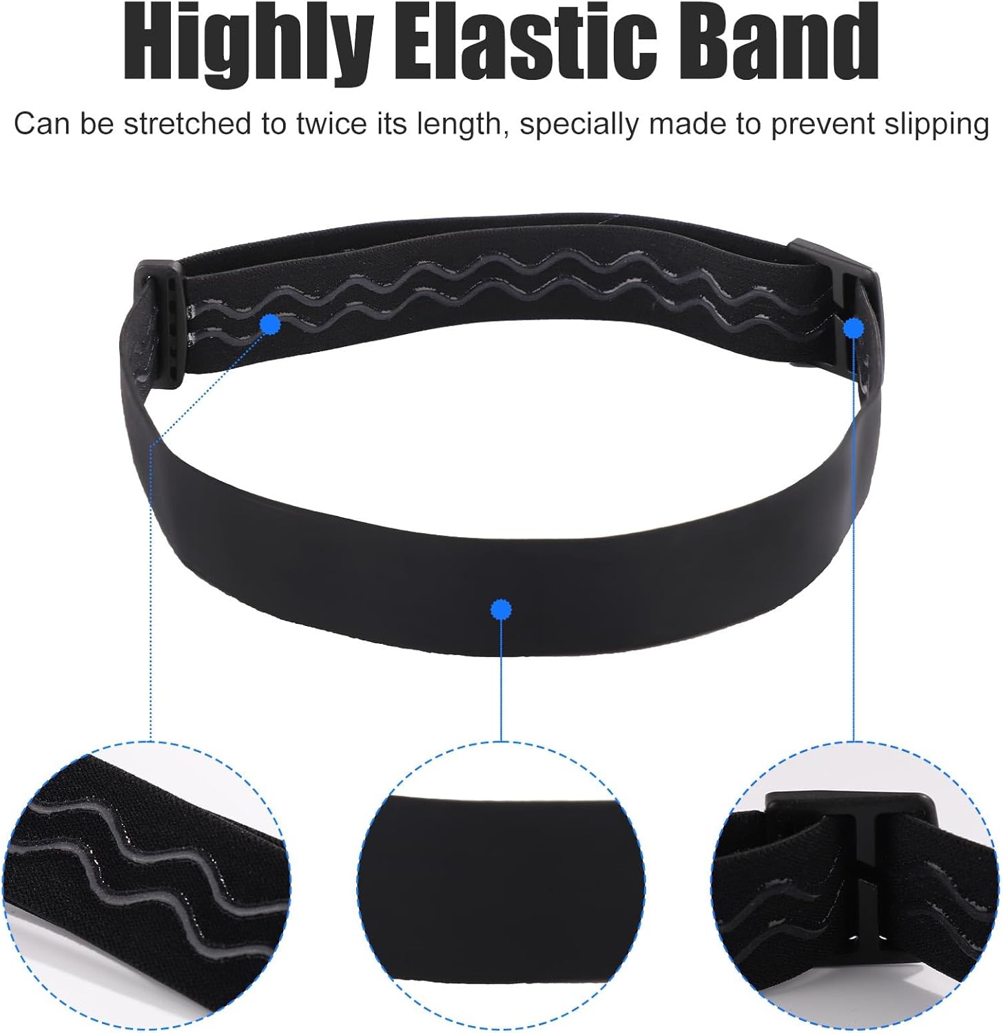 Premium Material: These headlamp straps are made of great quality nylon and plastic, making them reliable, elastic, comfortable to wear, connected by heat pressing, hard to break or damage, much stronger than bonding.