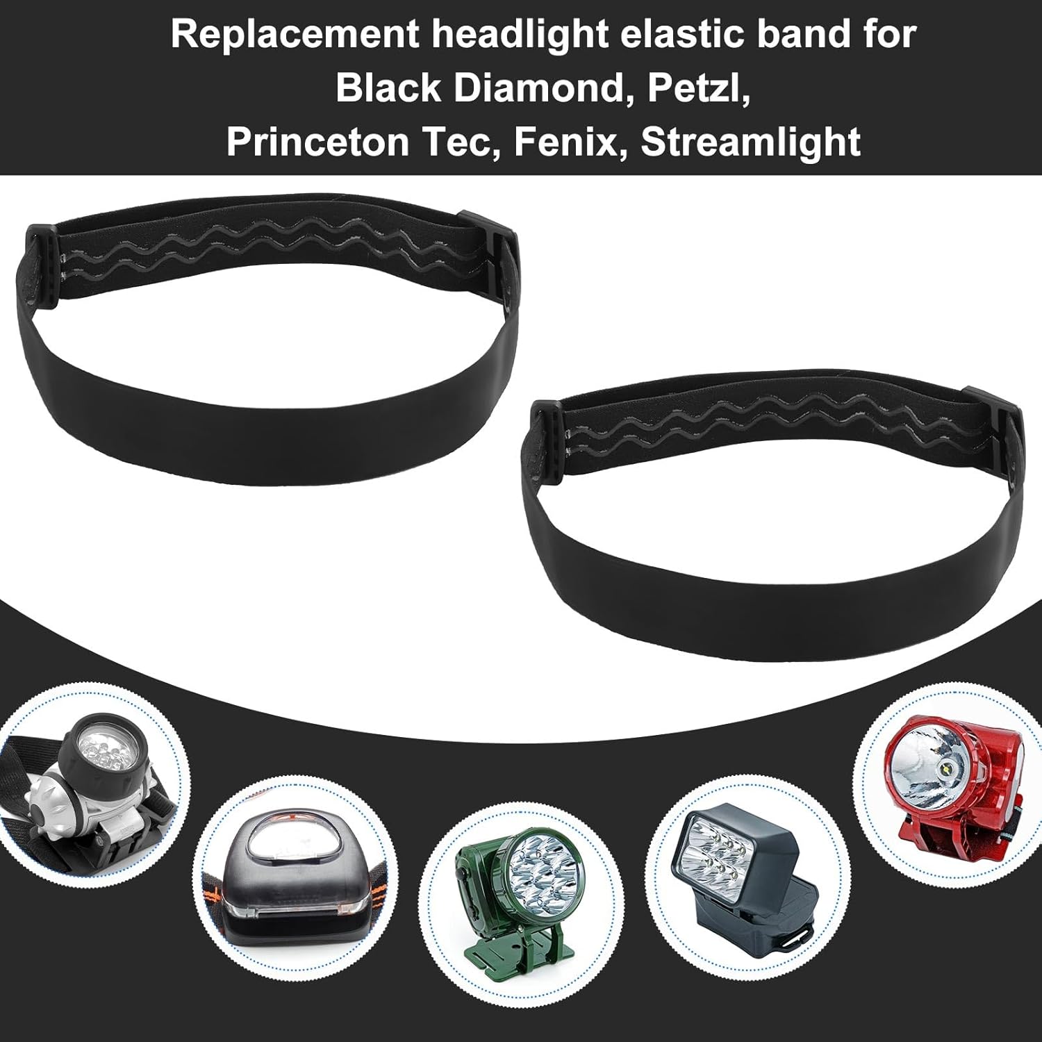 Compatible With: Our elastic headlamp straps are compatible with most headlights, including Black Diamond, Petzl, Princeton Tec, Fenix, Streamlight, etc. Please note that our product is not sponsored or endorsed by, or affiliated with the brands it fits, including Black Diamond.