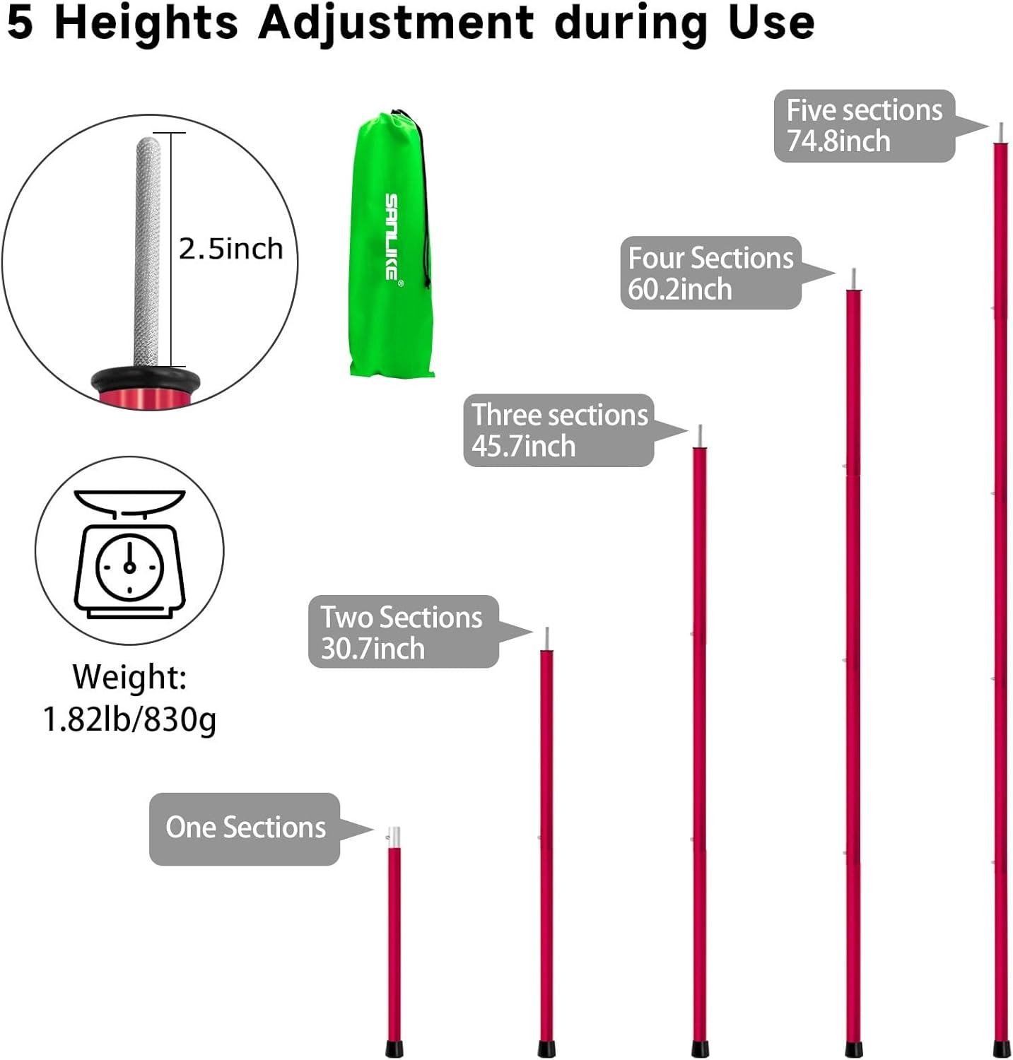 Perfect Adjustable Design Length Satisfies Your Multiple Height Needs:Each tarp tent pole has 5 sections that extend from 31.3 inches to 74.8 inches in length.The middle SAN LIKE tarp poles are all the same length, and you can choose how many to carry as needed.
