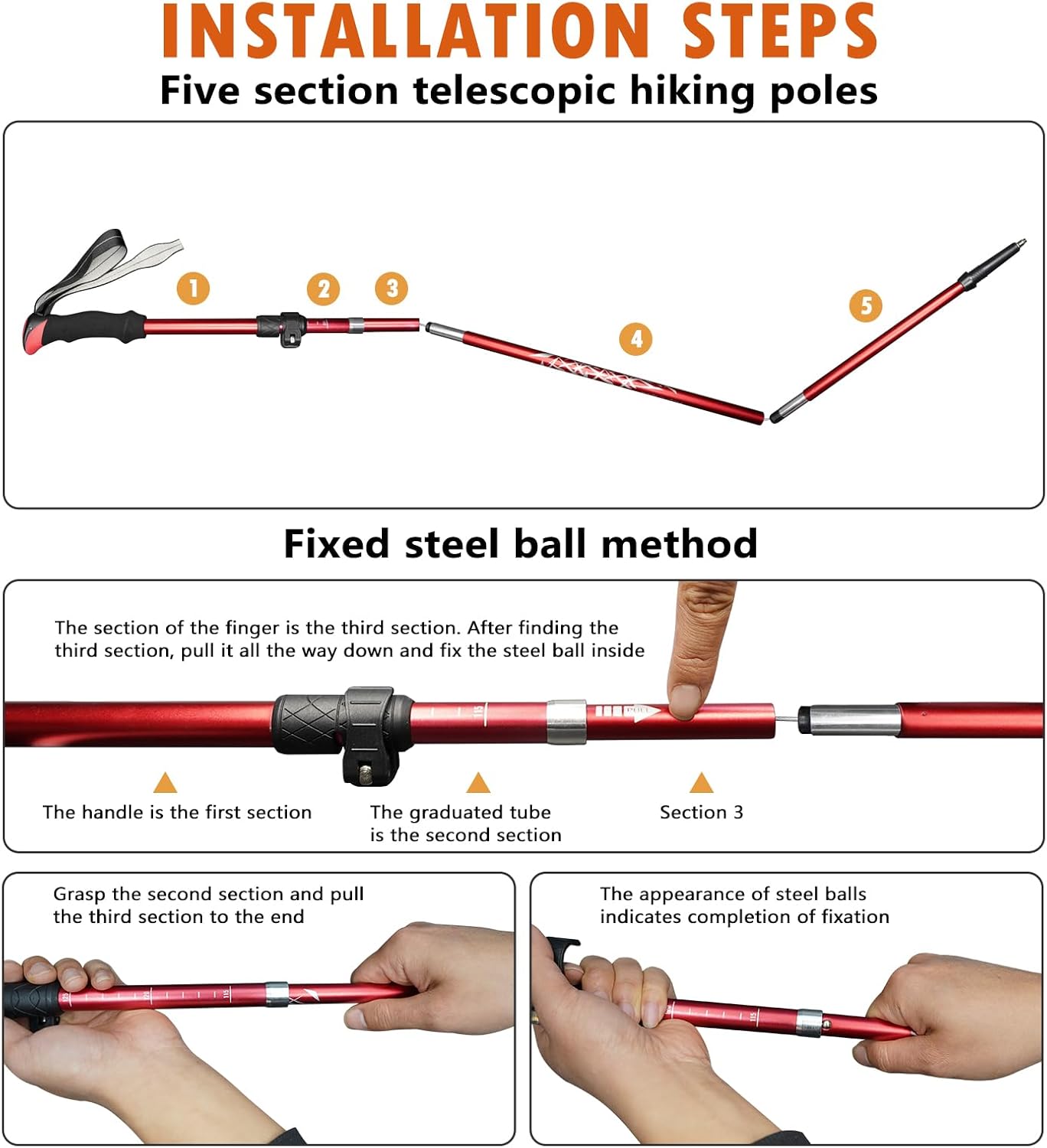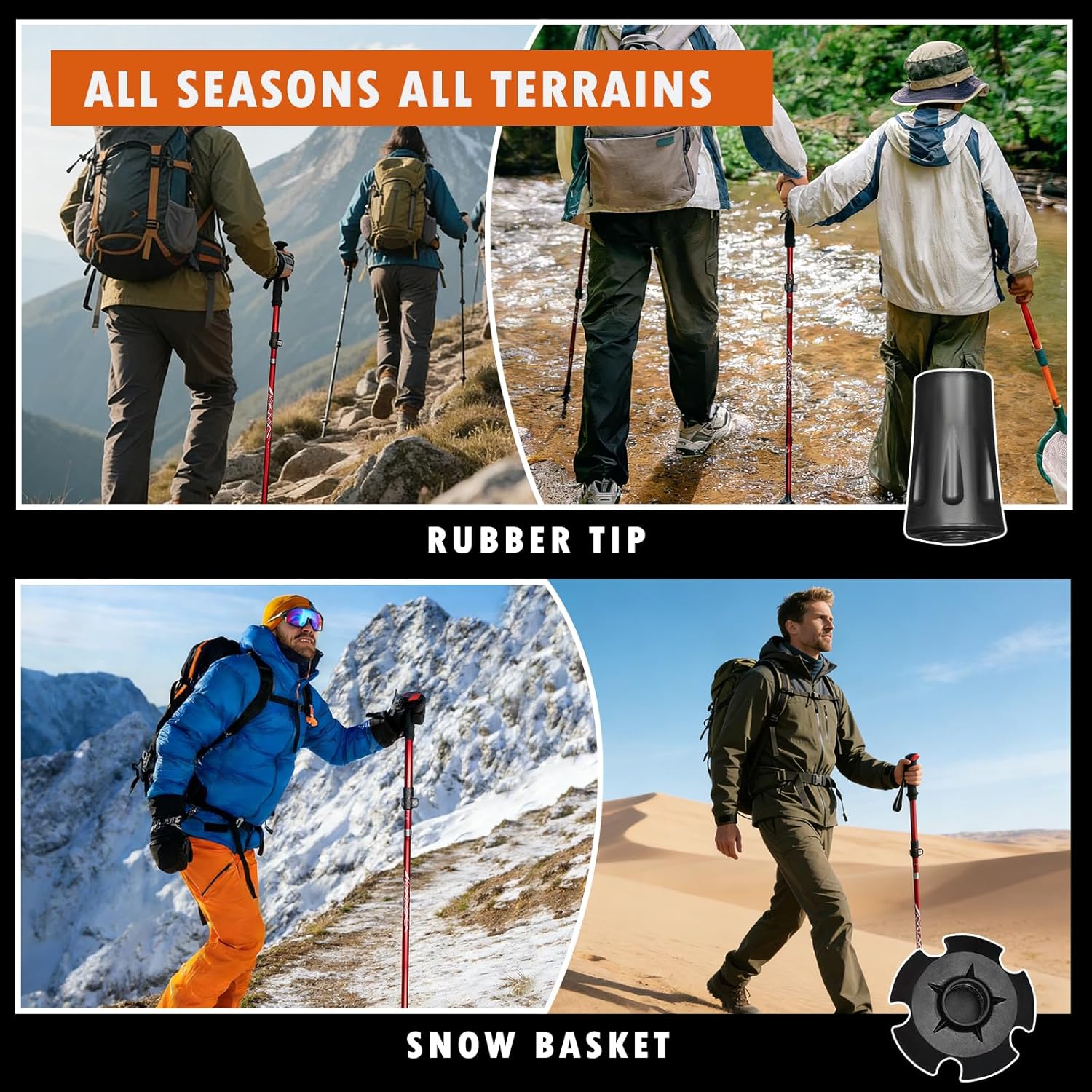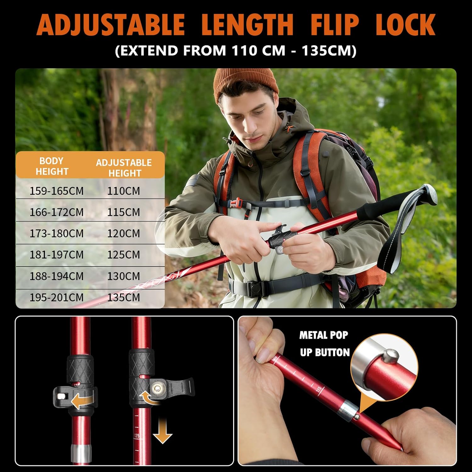 Quick-Adjust & Secure Locking System: It features a user-friendly, 3-section adjustable design with external flip locks for rapid and precise length adjustments. Achieve your ideal height for uphill, downhill, or flat terrain in seconds, thanks to a secure, wobble-free lock.