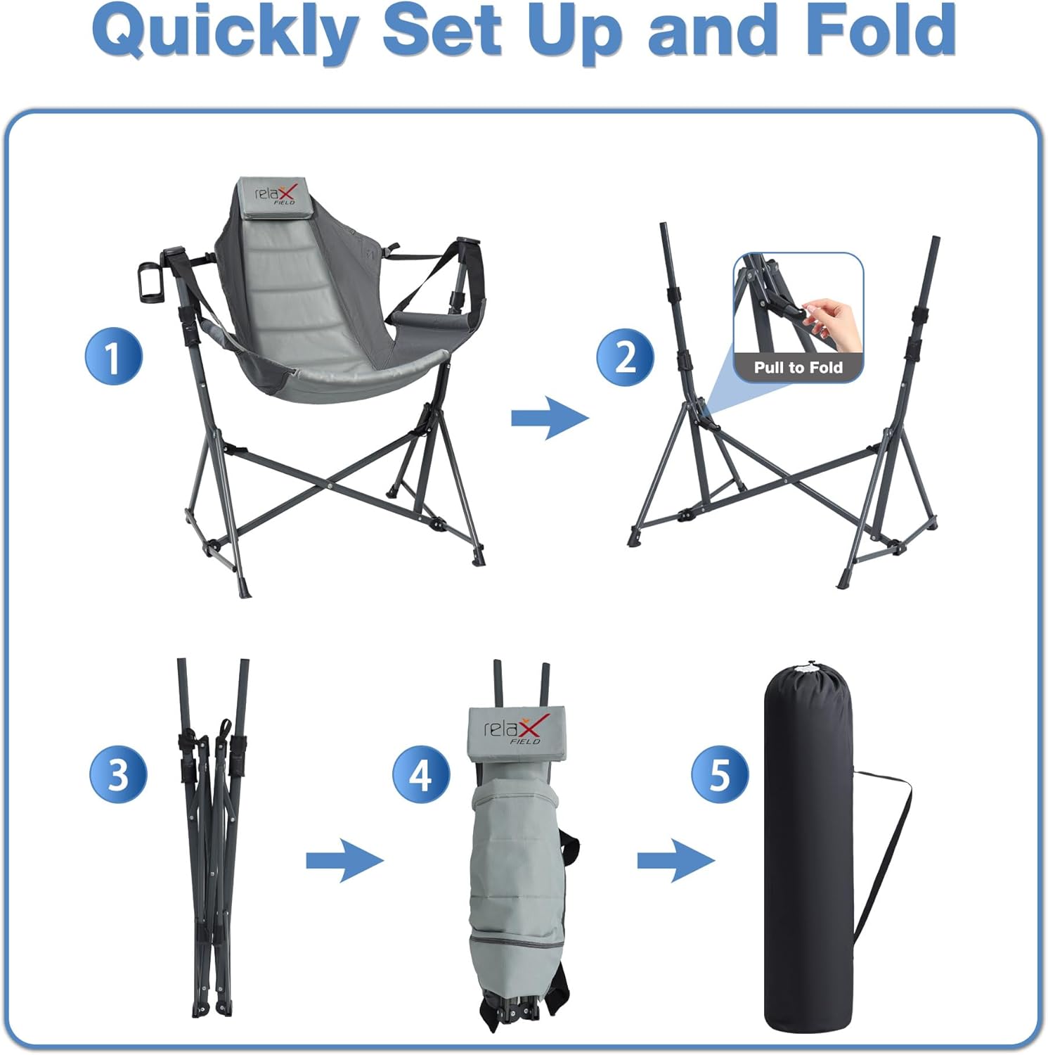 Easy to Use: The outdoor swing chair can be easily installed in seconds by simply unfolding the frame and hanging the seat. This convenience makes it versatile for various outdoor environments, including beaches, parks, campsites, and more
