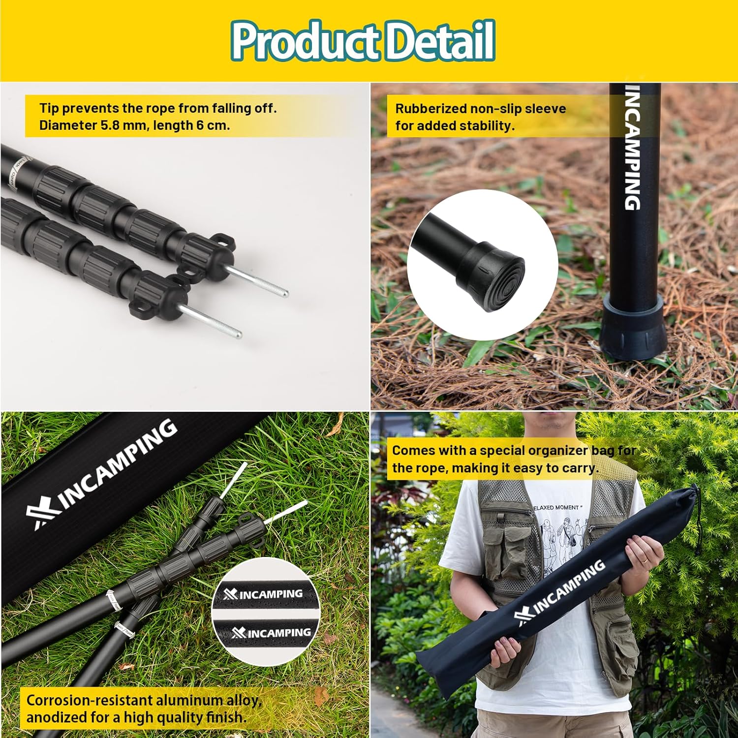 Quick-Setup & Space-Saving – Collapsible 4-section adjustable tarp poles save space in car trunks, backpacks, or closets.