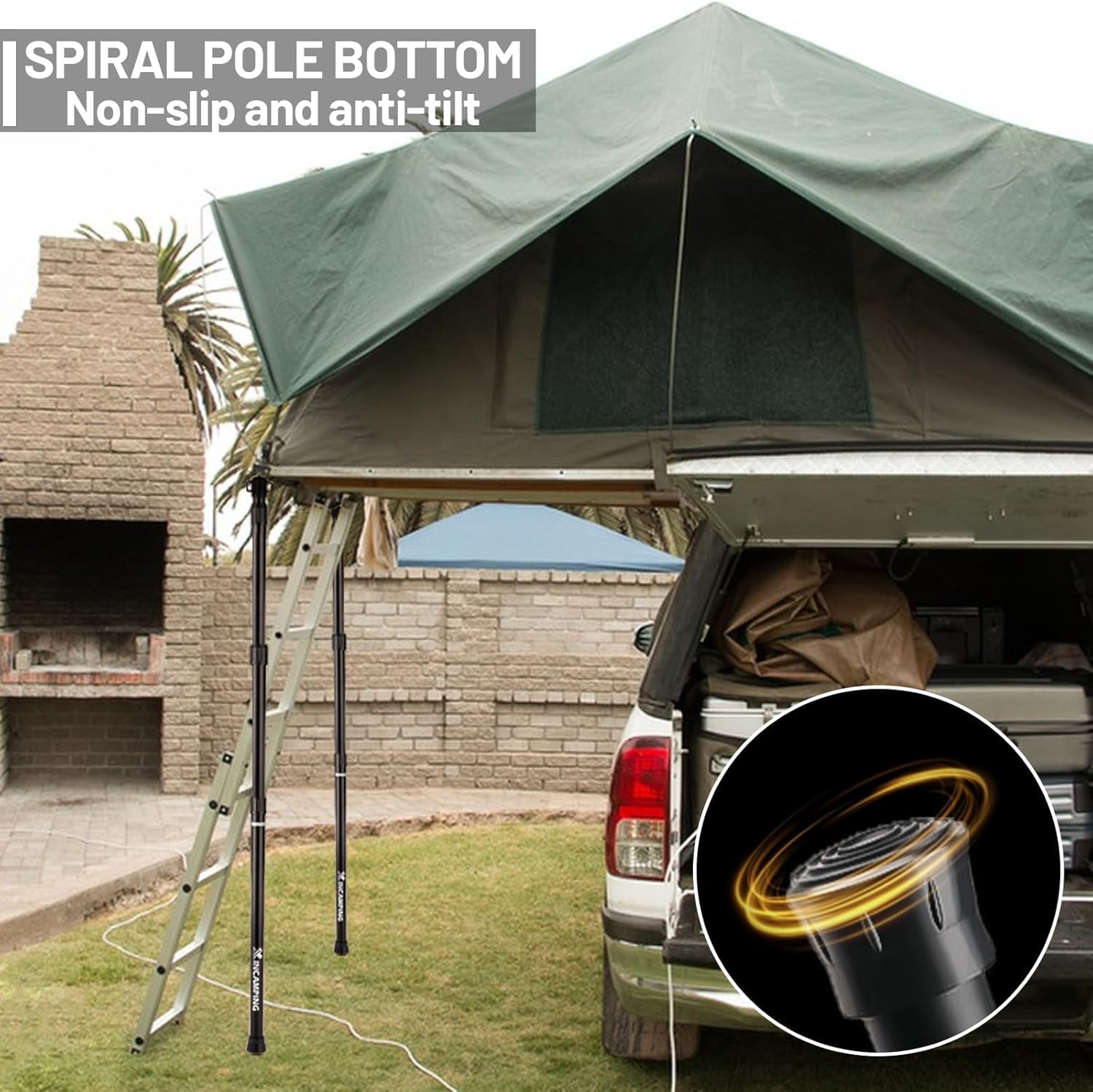 4-Section Adjustable Design – Tarp poles easily extend from 2.6ft (portable) to 7.6ft (maximum height) for tents, sunshades, gazebos and outdoor shelters.