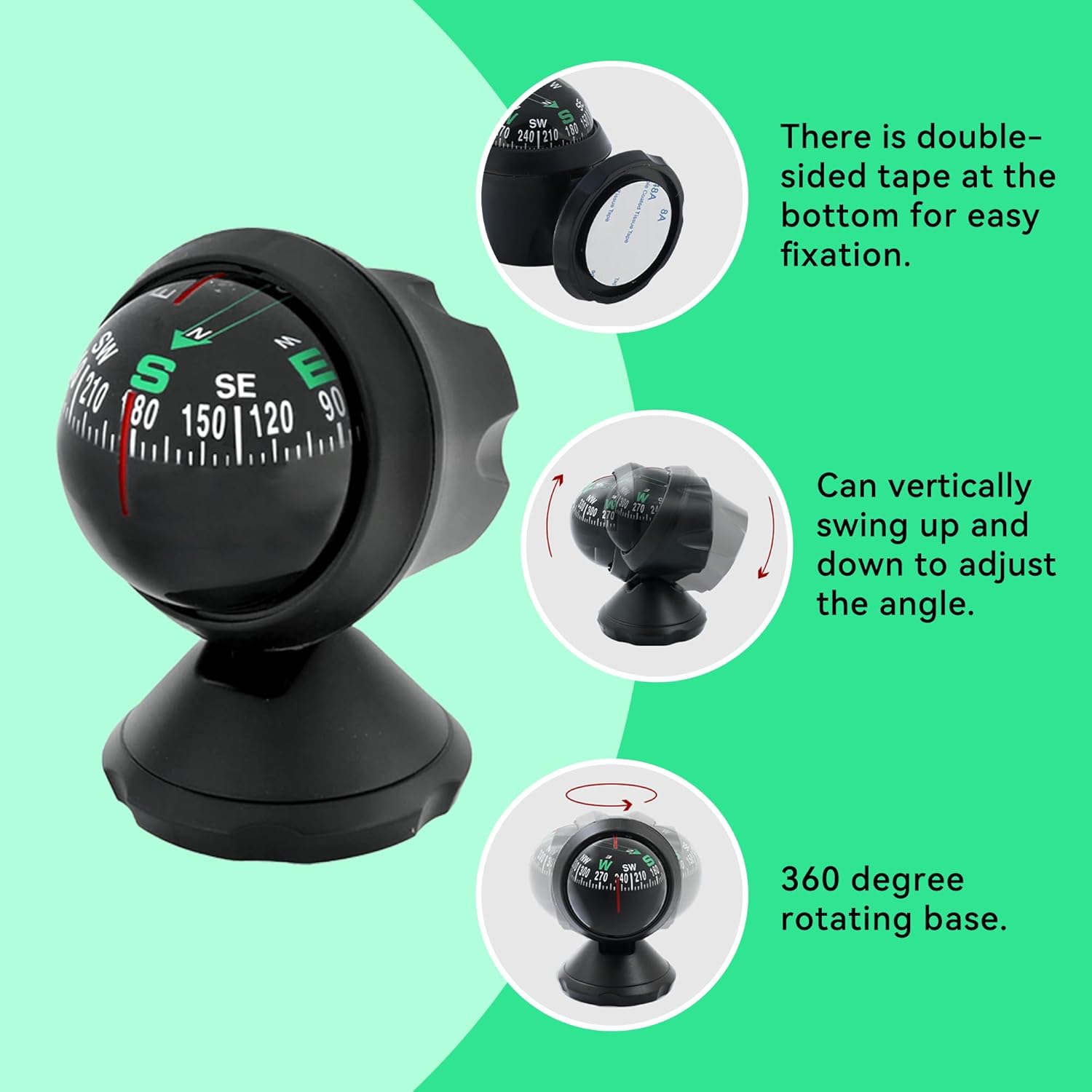 【Easy to Use】The adjustable compass ball base has adhesive on the bottom, allowing you to easily secure the compass to your car or boat. This makes it convenient for use anywhere.