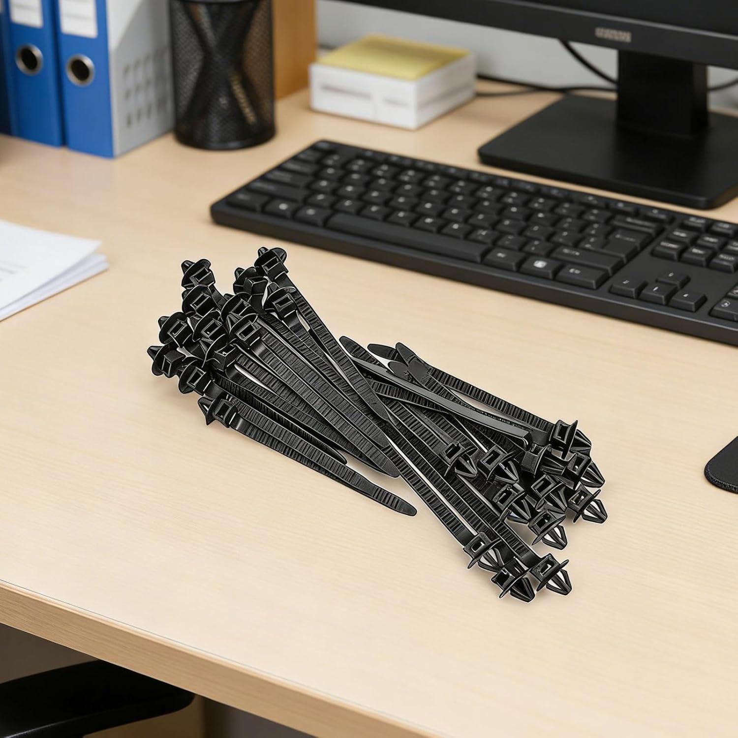 These heavy-duty nylon zip ties are built to last. Self-locking mechanisms keep everything tightly secured. Anti-skid features provide added grip in any situation. Ideal for automobile truck SUV and RV repairs or panel management. From bumper fixes to organizing tools in your workshop.