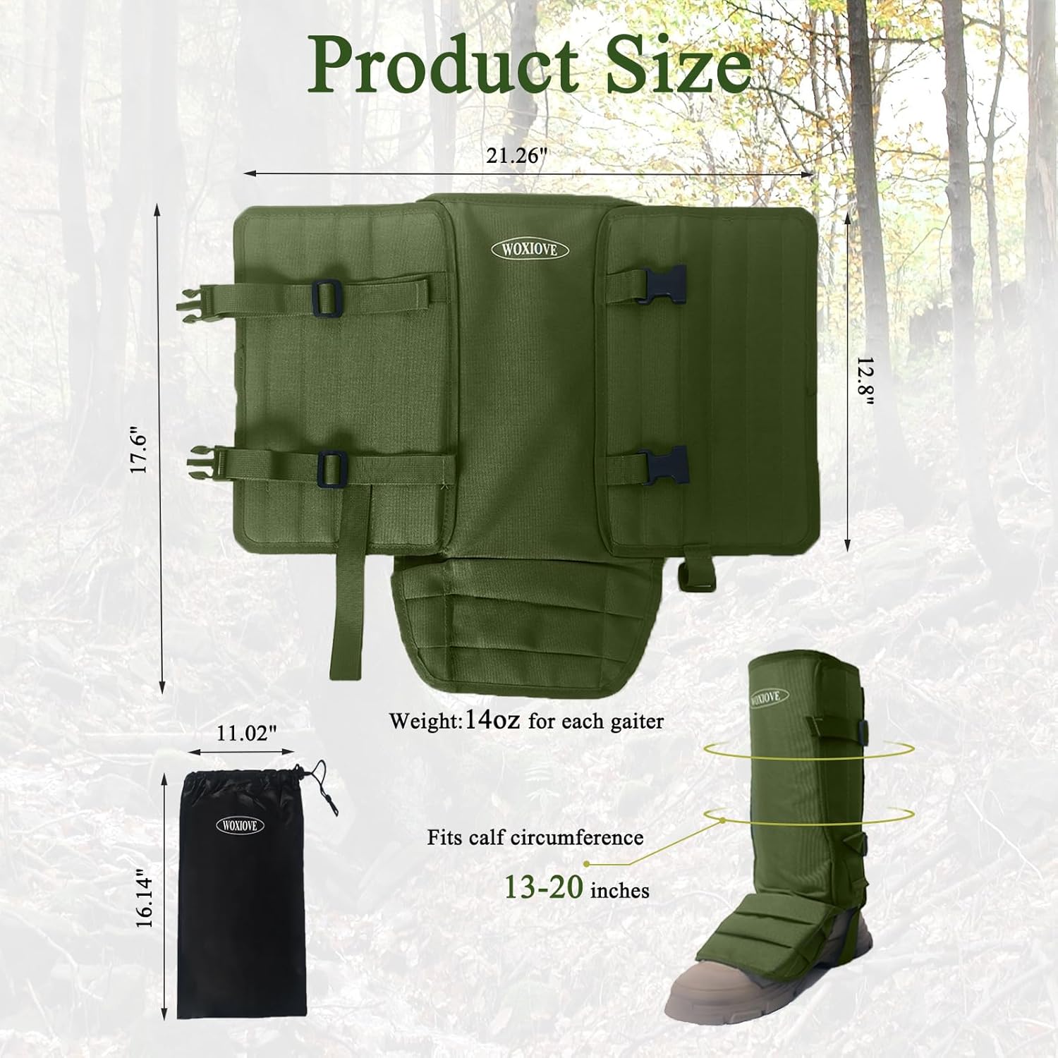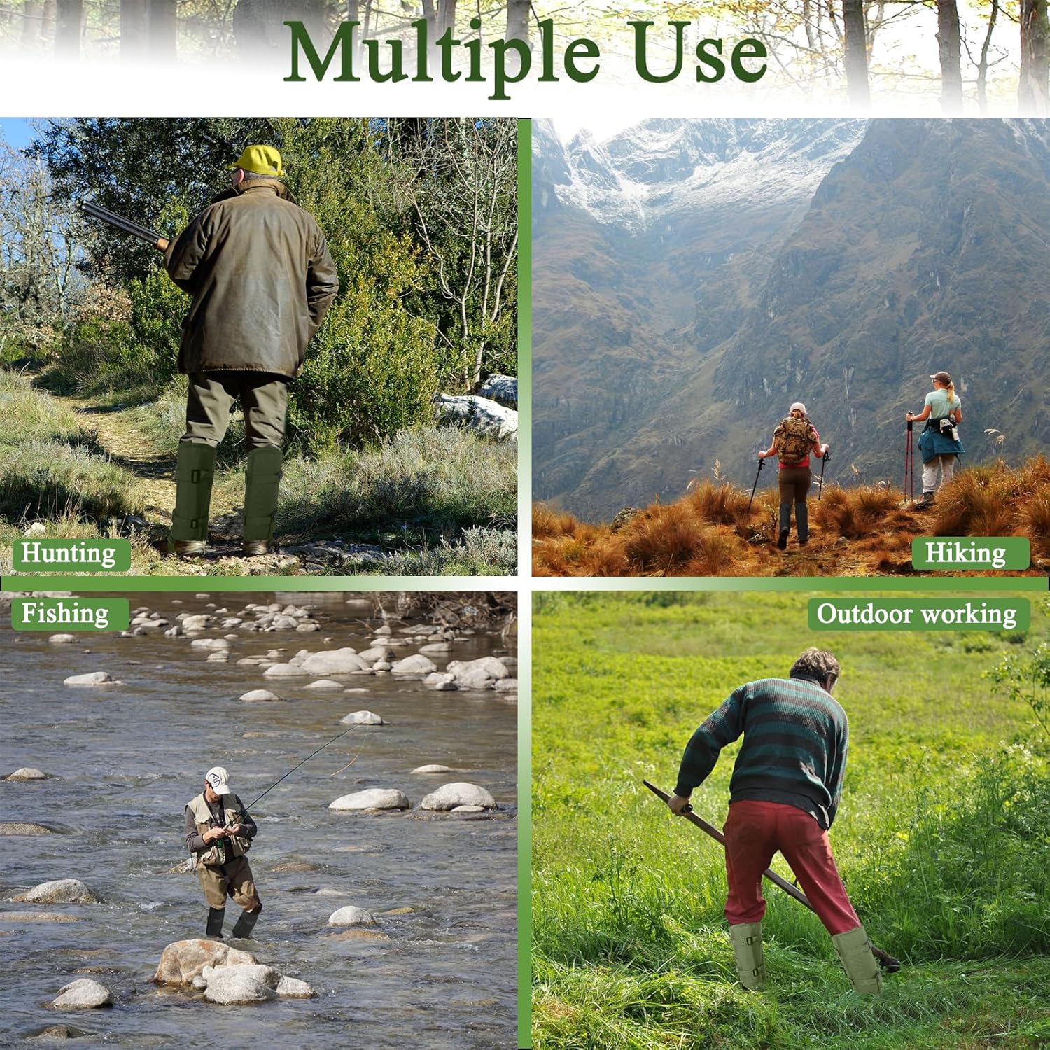 Multiple Application: Ideal for farm work, hunting, hiking, and fishing, these shoe gaiters let you walk outdoors freely without fear of sharp objects; A great addition to your hunting equipment