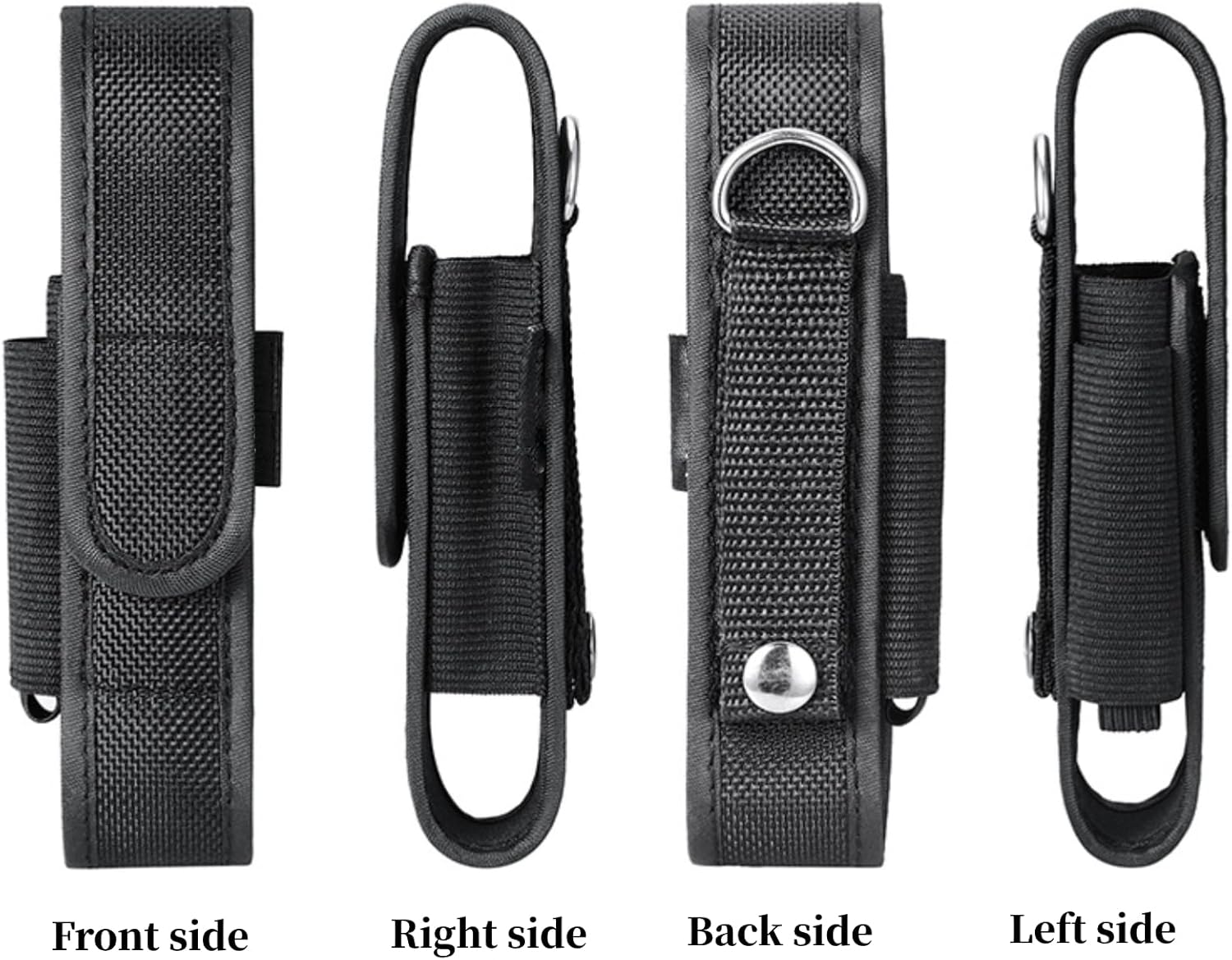 【Portable design】The flashlight Pouch comes with a side pocket made of highly elastic material that can be used to carry batteries ( batteries are not include ), full top flap with high strong and three buttons helps secure canister, not easy to get caught or flip open