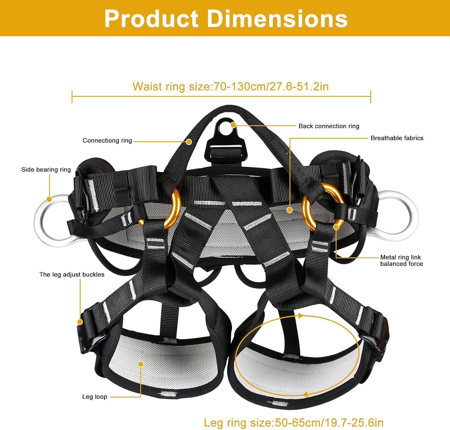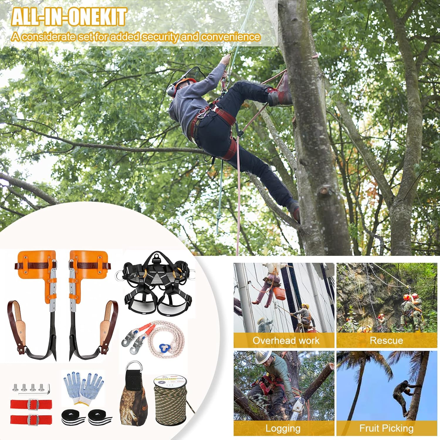 ✨【Package Includes】Our tree climbing gear set package includes one pair of tree climbing tools + 1 * full body protective belt + 1 * climbing rope + 1 * nylon umbrella rope + 1 * throwing rope bag + 2 foot straps + 2 ankle straps + 1 * pair of gloves + 4 * replacement screws, an additional hex wrench. Any questions or confusions please feel free to contact us. We will solve it for you within 24 hours