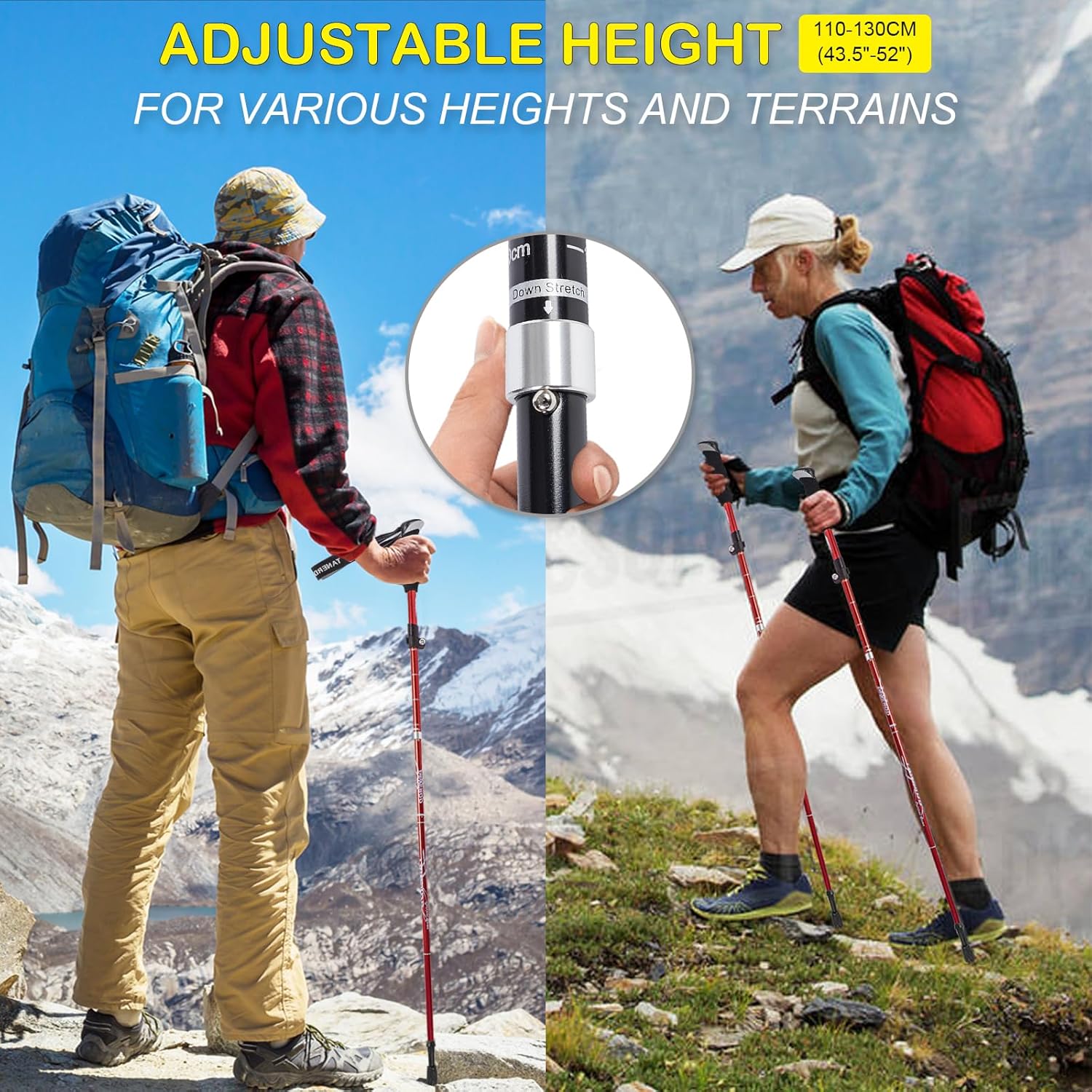 【EASY TO ADJUSTABLE LENGTH】- Our Collapsible Hiking pole with Quick lock mechanism allows you to adjust the walking poles’ length from 44″ to 53″ quickly and easily.It perfect fit for short or tall men, women & kids.