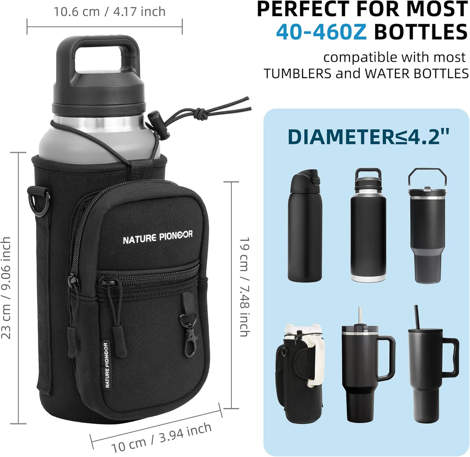 Durable metal accessories:All the accessories on this water bottle strap are metal.Quality metal hooks, metal zippers and metal D-rings are stronger and more durable than plastic parts