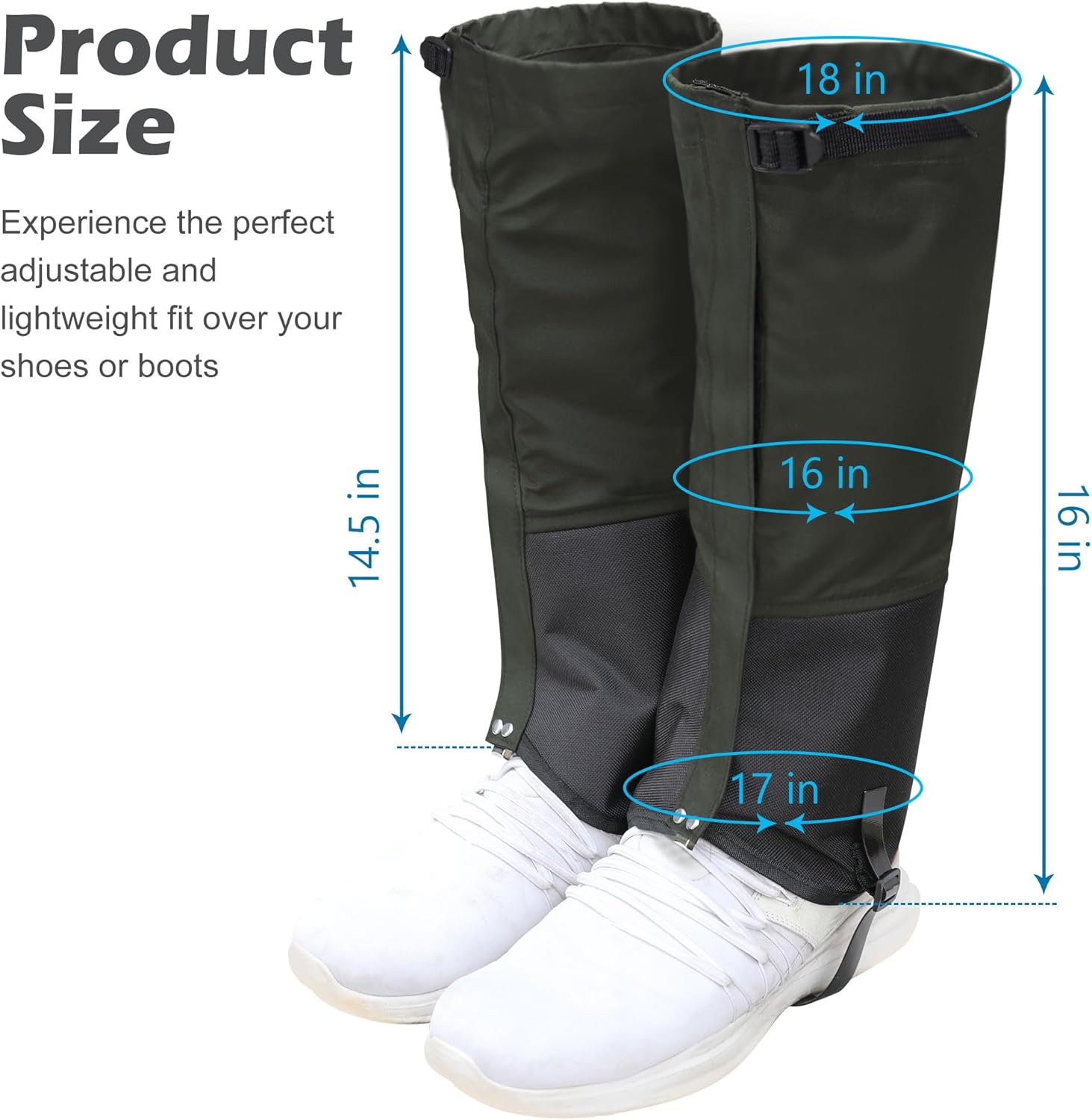 Practical Protection: Gaiters can prevent flying gravel, debris of grass,water, snow, rain, mud, wind, mosquitoes,insects from entering into your shoes or pants.They also can mitigate cuts and bruises as well as rips or stains in clothes.