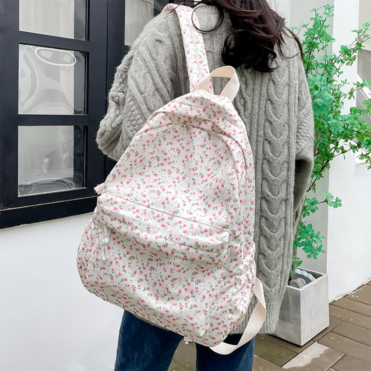 Material :The floral backpack is made of ultra-lightweight, high density nylon fabric and cute printing polyester lining.It’s well-made: the stitching on it is nice and tight. The zippers are smooth. And the straps are substantial.