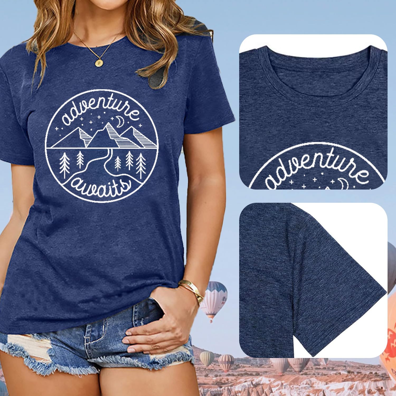 🥾 Women Mountain Shirts and So The Adventure Begins Tshirt Sunshine Moon Nature Pine Graphic Tees Heart Let’s Go Find It Top — Review, Key Features & Current Price