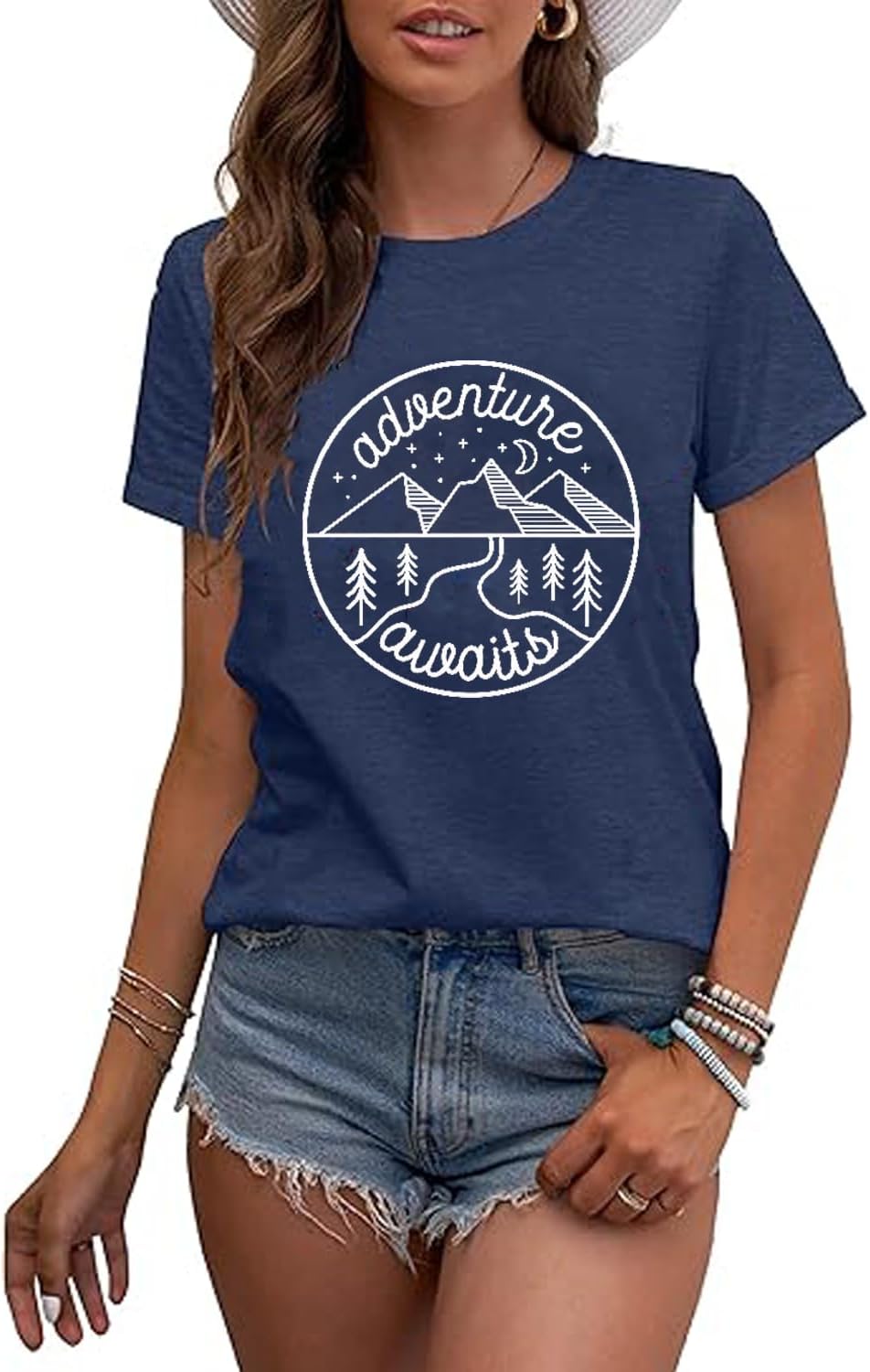 🥾 Women Mountain Shirts and So The Adventure Begins Tshirt Sunshine Moon Nature Pine Graphic Tees Heart Let’s Go Find It Top — Review, Key Features & Current Price