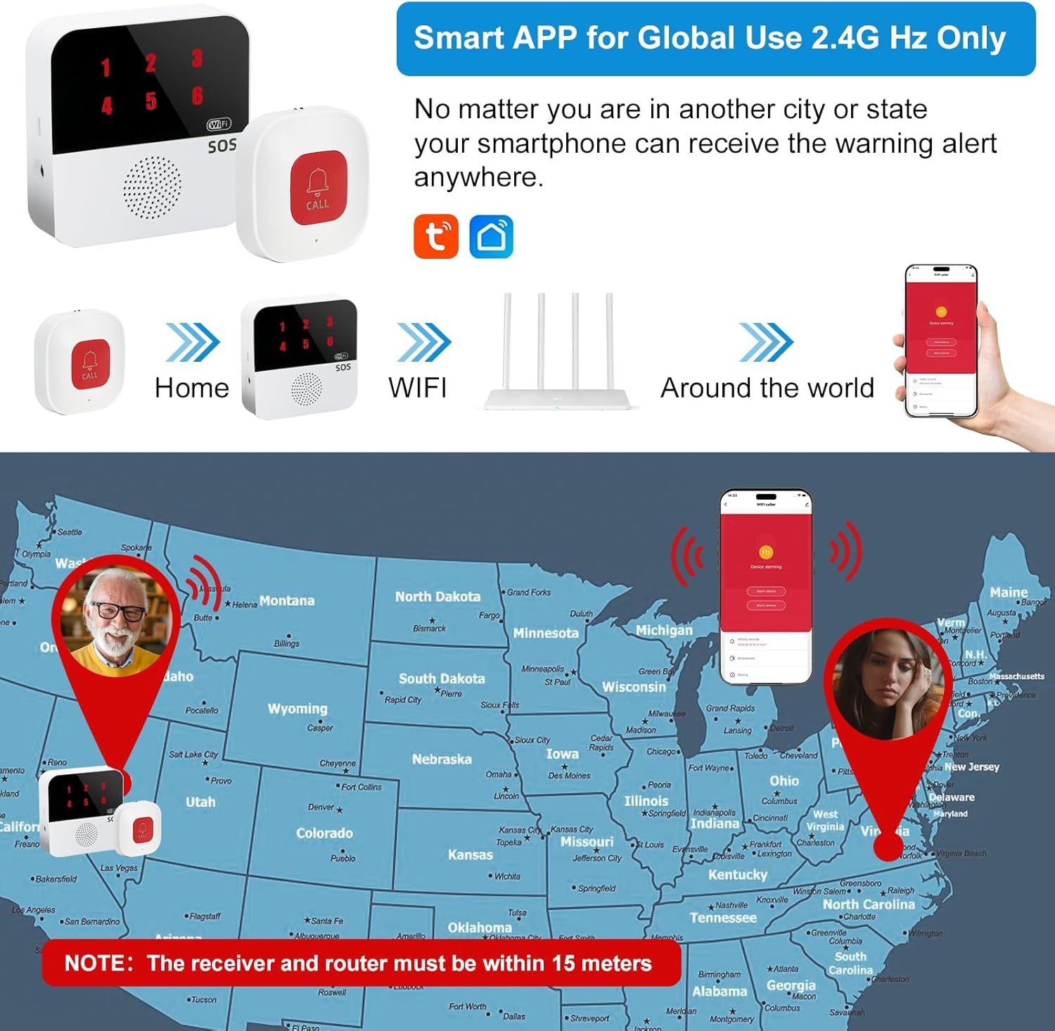 【Meet your needs】This Wifi life alert systems for seniors is suitable for homes, hospitals, clinics, nursing homes and other places. Each button corresponds to a different number on the receiver, allowing caregivers to more easily identify who needs help