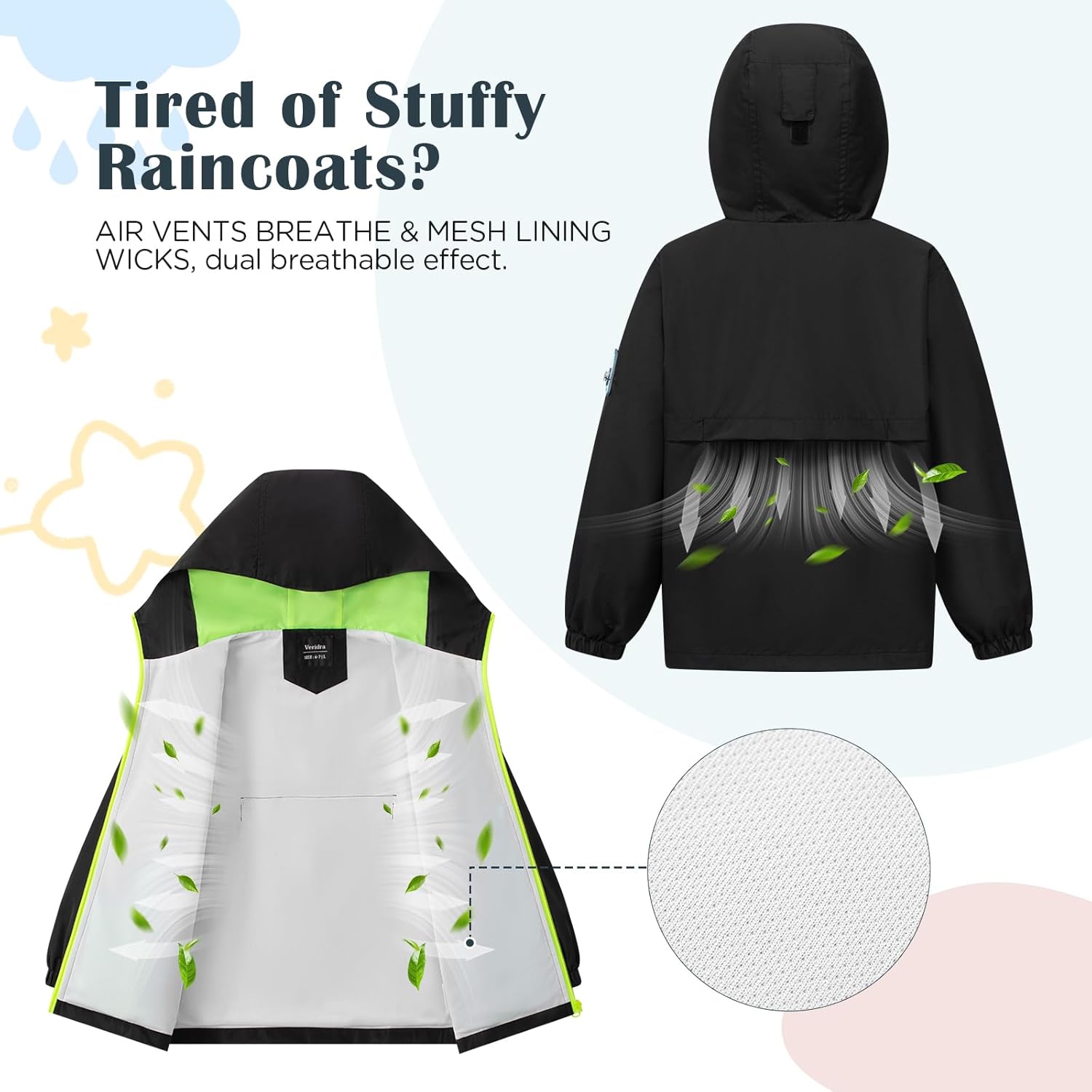 🥾 Kids Rain Jacket with Air Vents Mesh Lined, Hooded Raincoats with Extended Brim for Boys Girls — Review, Key Features & Current Price