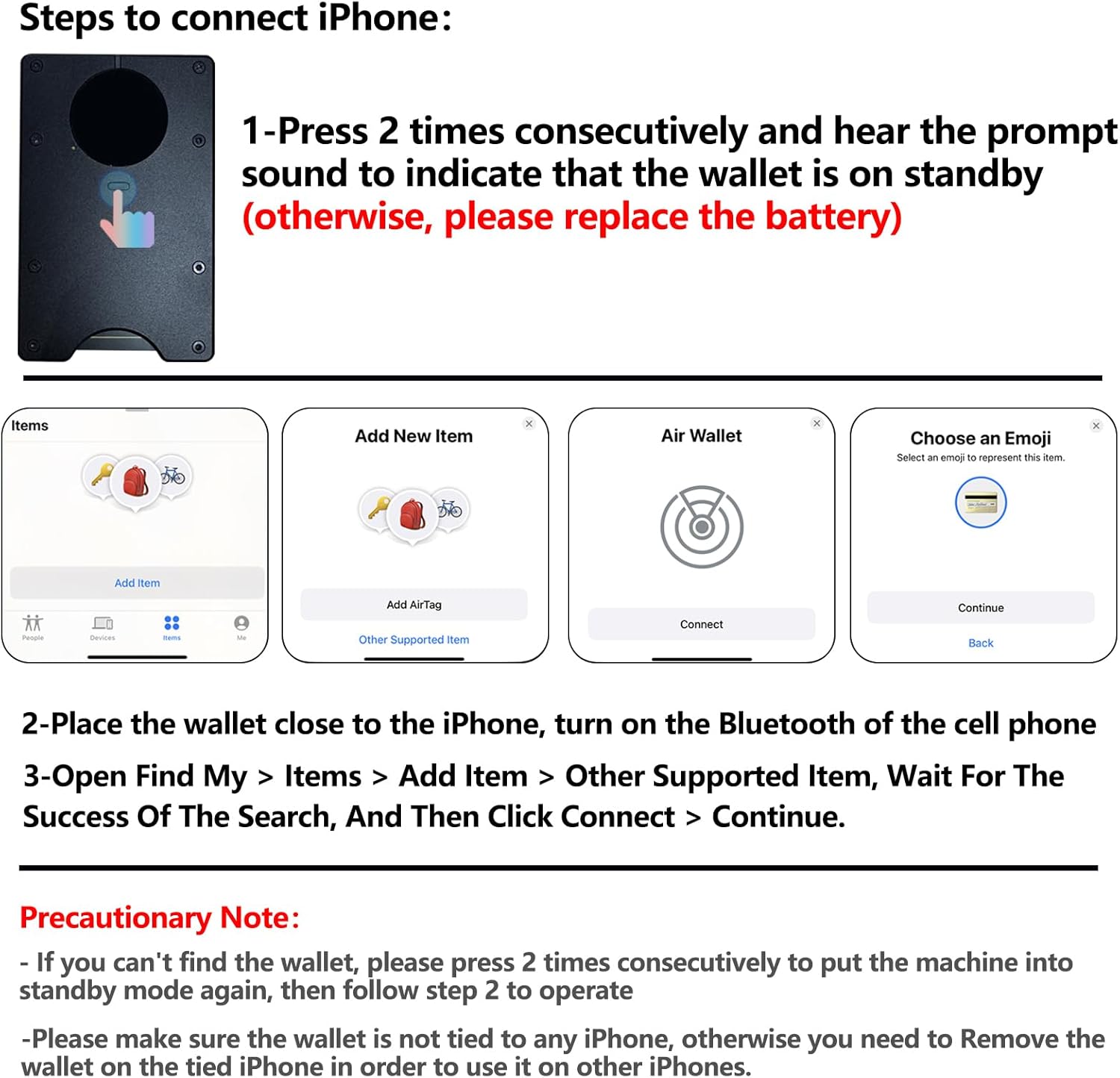 AirWallet Includes Trackable Airtag Chips: AirWallet is a minimalist, ultra-thin wallet with built-in AirTag chips, officially certified by Apple MFI and connected to the FindMy network. Thousands of Apple devices (iPhone/iPad/Mac/iWatch) around the world will help you find your wallet. No need for airtag and airtag holder.