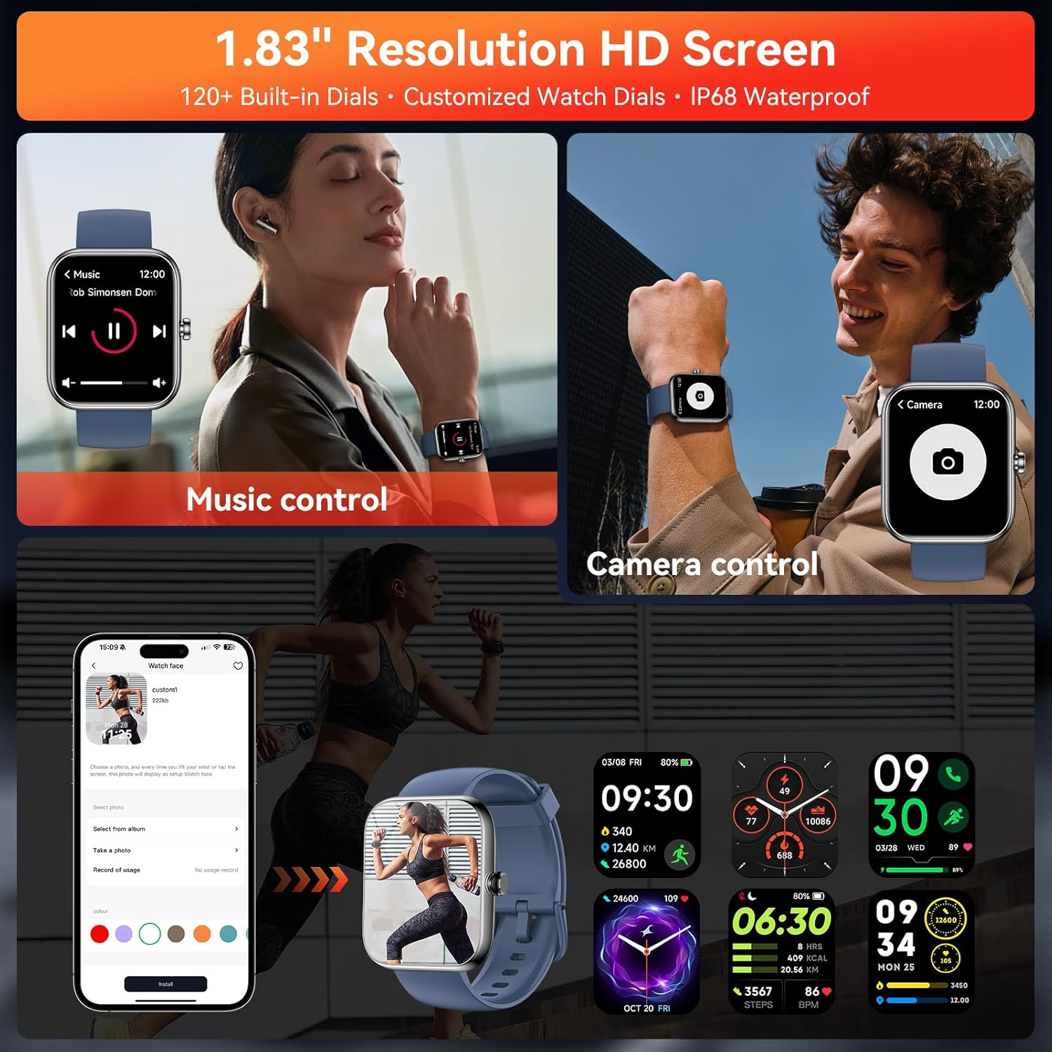 Multi-functional Smartwatch: Fitness tracker is equipped with basic functions such as voice assistant, weather forecast, camera and music control, customized dials, with its multifunctionality, this watch makes your every day easier, and more productive