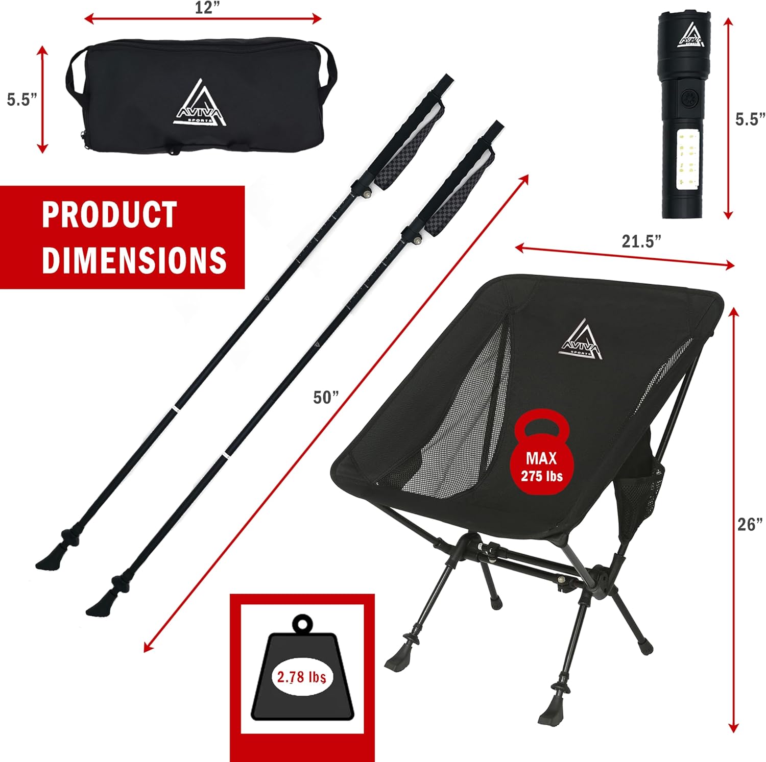 π₯Ύ 3-in-1 Camping Chair, Trekking Poles & Mounted Flashlight β All-in-One Backpacking Kit Small & Weighs Only 3 lbs β Lightweight Aluminum Hiking Poles – Chair & High Lumen LED Light β Review, Key Features & Current Price