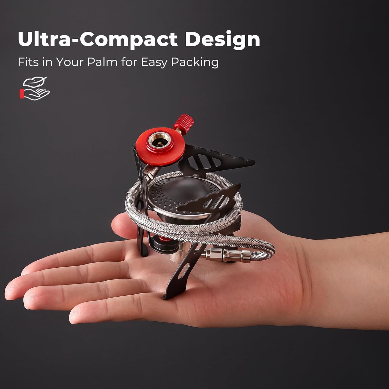 This small camping stove combines versatility and portability, making it an ideal companion for camping, hiking, and backpacking. Portable gas stove with powerful heating performance, it effortlessly brings water to a rolling boil or maintains a gentle simmer, catering to various cooking needs such as frying, stewing, steaming, and roasting—even accommodating larger cookware. Its foldable design is lightweight and compact, adding minimal burden to your gear.