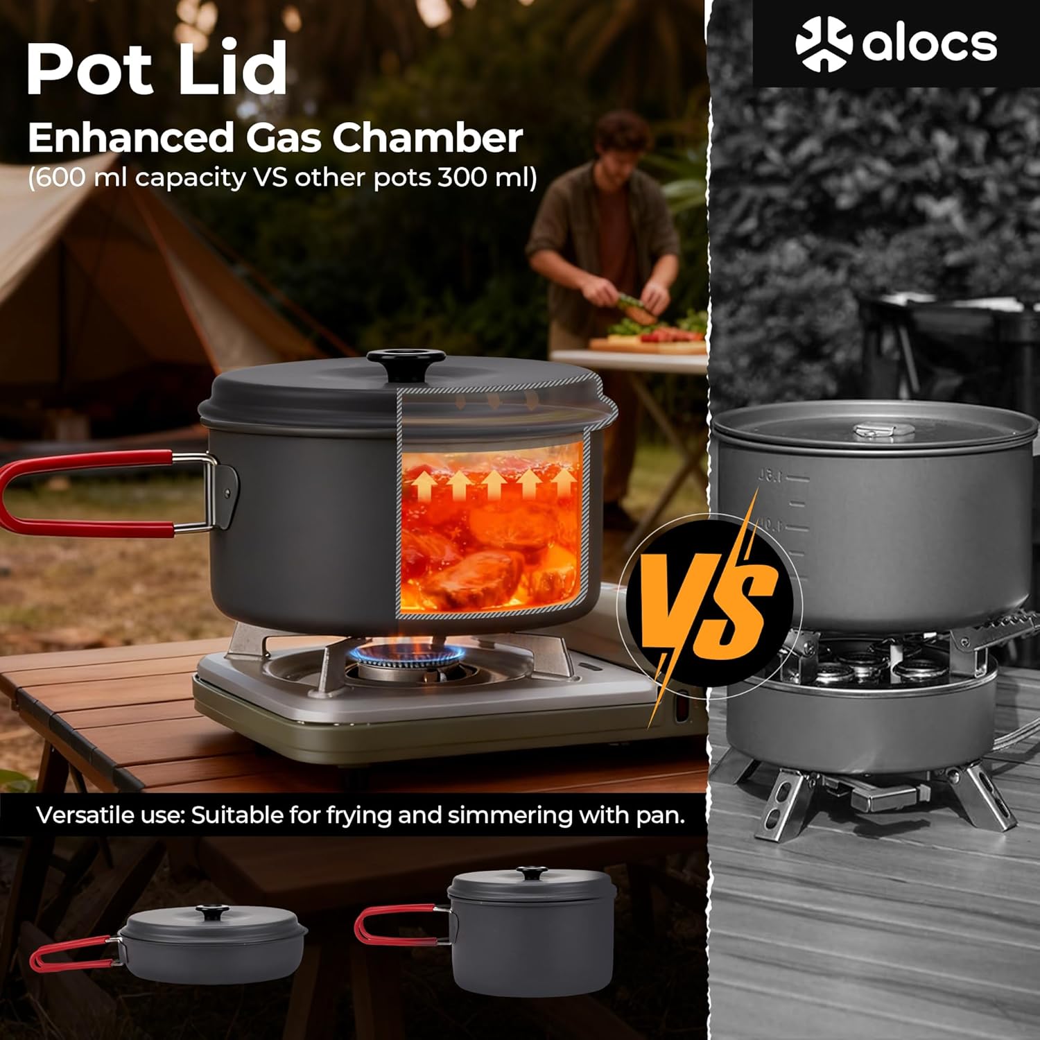 Widely Application: Alocs camping utensil set comes equipped with all of your kitchen essentials, offering an ideal solution for boiling water and cooking food outdoors, quick heat transfer save time and fuel, It is a good partner for camping cooking, picnic, hiking, party