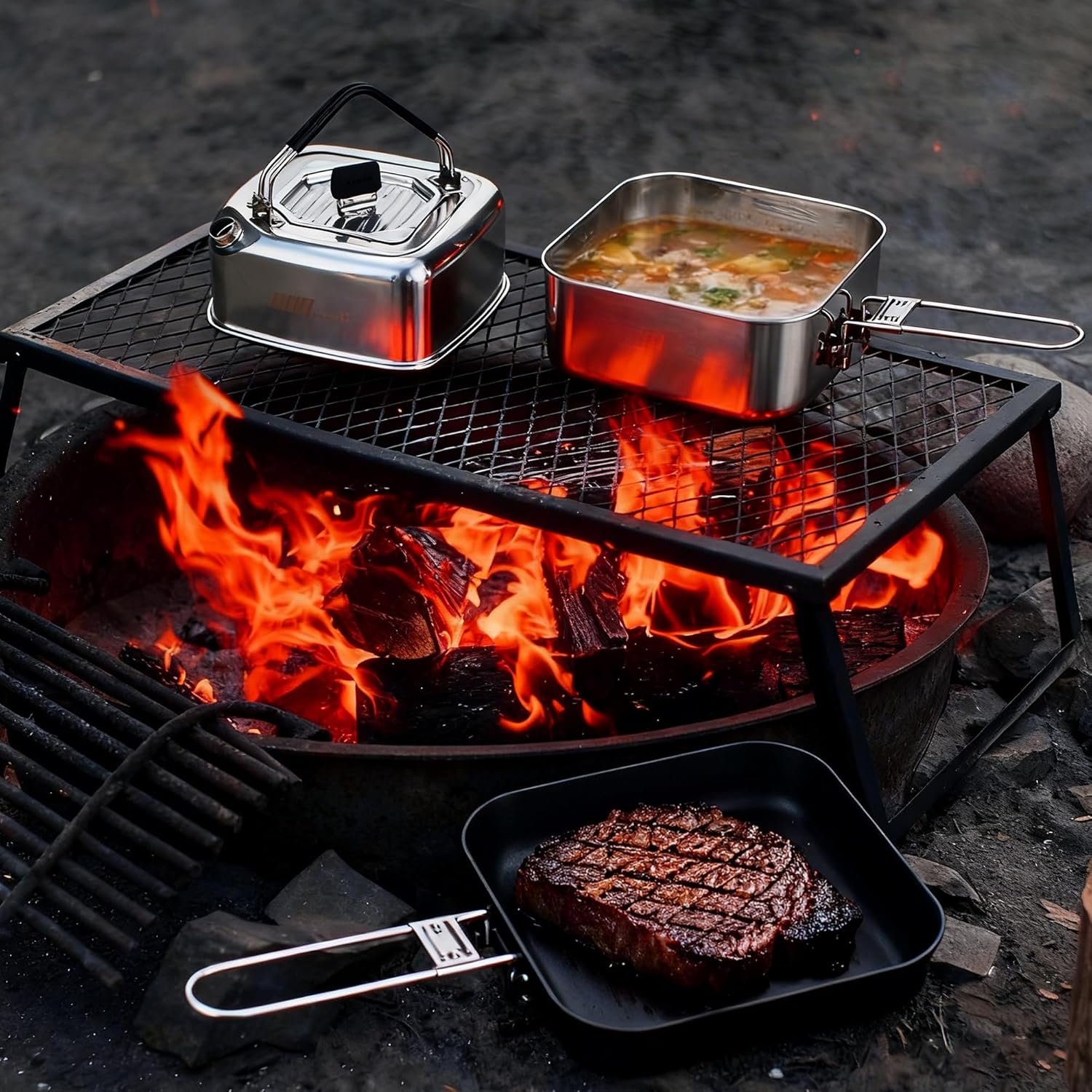 Full-Body Non-Stick Coating Pan – Crafted from lightweight aluminum alloy for rapid heating. Unlike camping pan, it features a full-body non-stick coating—applied not only to the cooking surface but also to the exterior—significantly enhancing durability and ease of cleaning. It also doubles as a lid for the square pot, enabling steam cooking, making it an indispensable 2-in-1 tool for your camping kitchen.