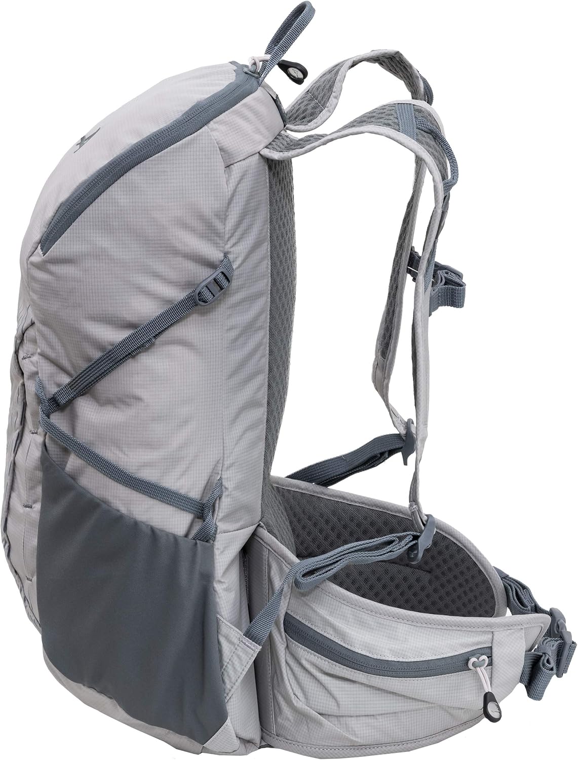 Fully equipped with hidden daisy chain, trekking pole loops, side compression straps, stretch side pockets, rain cover and hydration reservoir hangers, pocket, and drink tube outlet