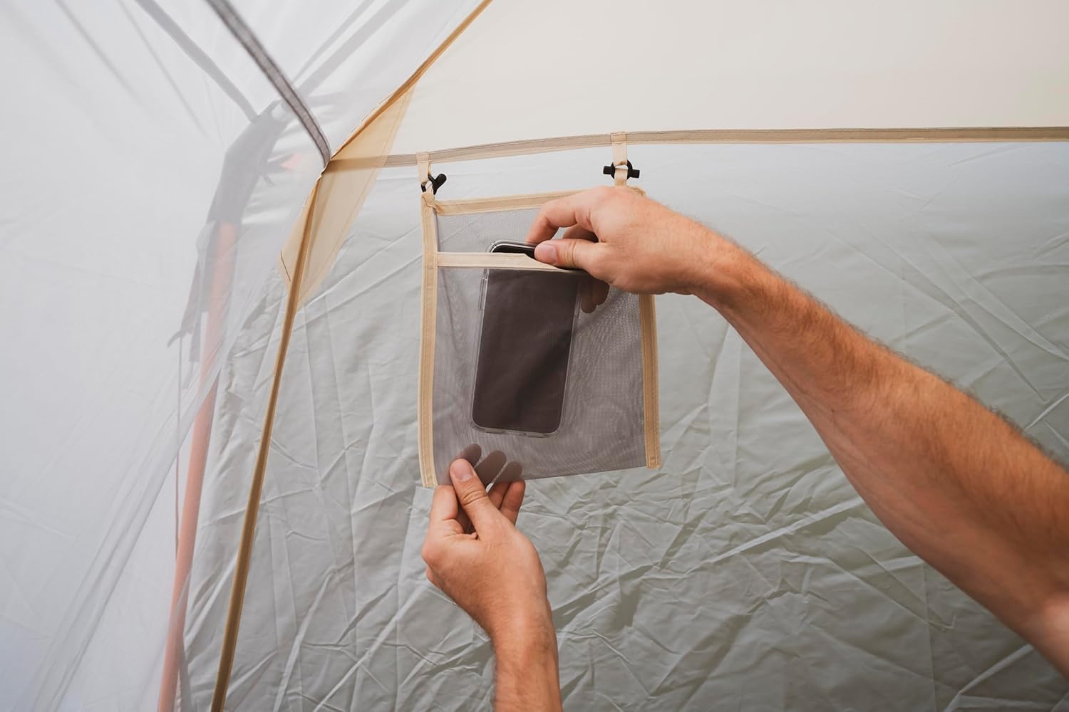 Convenient Features for a Comfortable Outdoor Experience: A tall entrance height and extra-wide door with an awning allow easy entry and exit, even with bulky gear; Two interior mesh storage pockets and four hanging loops keep your essentials organized, while included heavy steel stakes and guy ropes add extra security