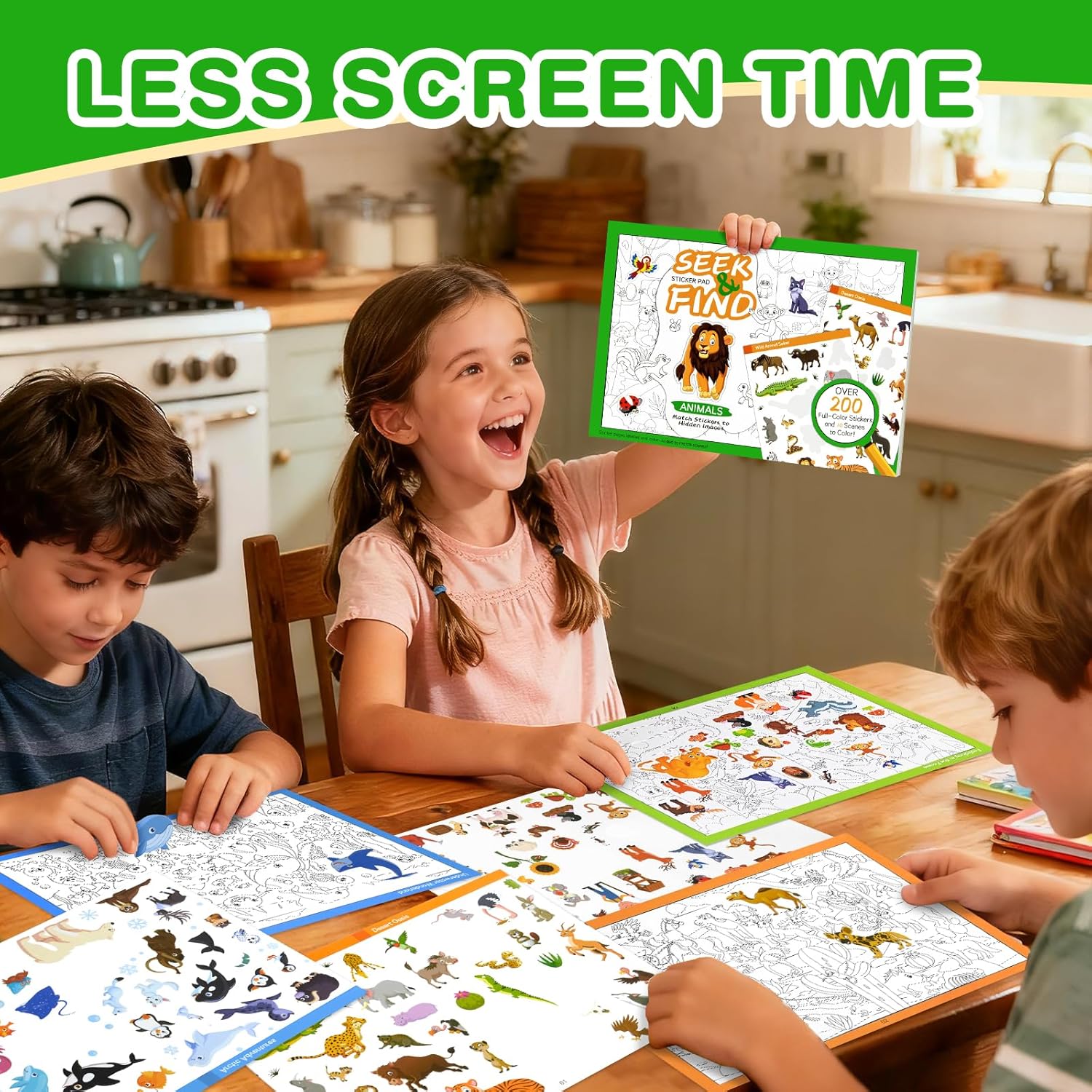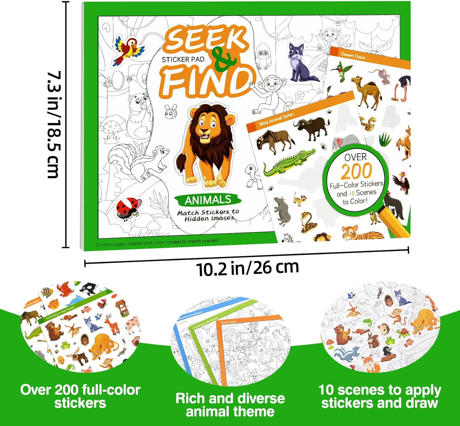 2-in-1 Sticker & Coloring Book: Includes 200+ reusable animal stickers and 10 themed scenes. Kids can use watercolor pens, crayons, or markers to expand creative play and enjoy long-lasting, screen-free fun
