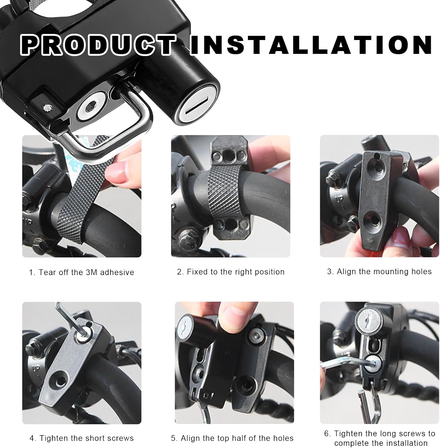 Easy to Use: At first, put the spacer over the screw. Next, snap the base and lock it onto the handlebars of your motorcycle or bicycle. Then, align the screw holes and use a wrench to insert the screws and tighten them. Finally, insert the key and turn to lock the helmet