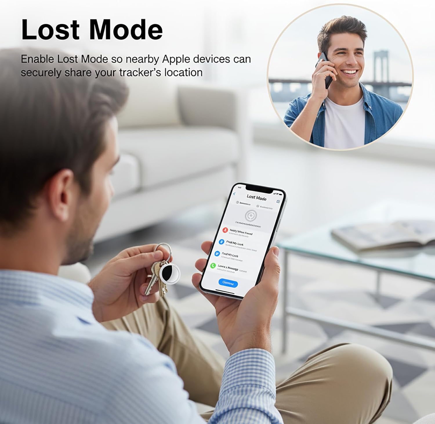 2.If you preset a lost mode and retain your contact information, the key finder allows nearby Apple devices to access your contact information and remotely provide you with the location of the localizer.
