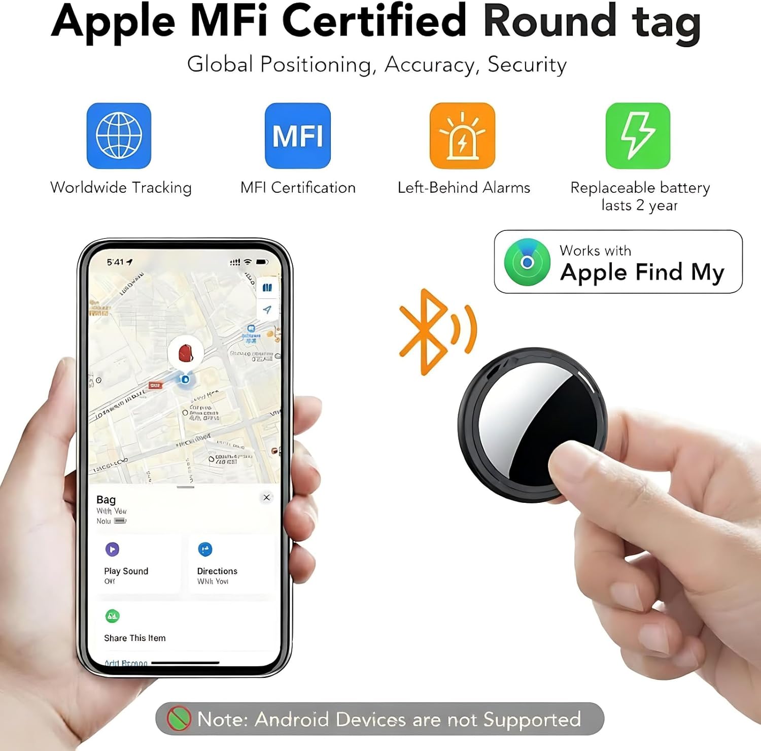 Find Far Away: When outside Bluetooth range,use the Find My app to see your item locator’s most recent location on a map,leverage the network and GPS of millions of Apple devices to locate it anywhere in the world,helping reduce the loss of your items