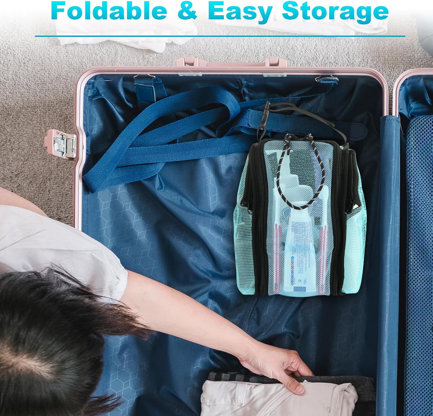 【Convenient Handle Strap】 Travel shower caddy has a comfortable handle strap for easy carrying and hanging. The adjustable handle strap has buckle, allowing you to hang the toiletry bag where you need it.