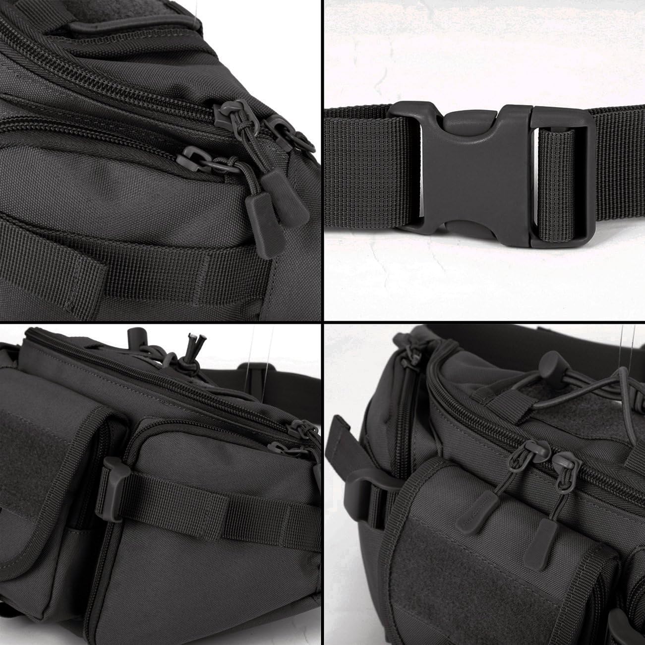 LARGE MAIN COMPARTMENT is big enough for carrying your ipad mini, cell phone, MP3, glasses, tactical flashlight, compass, kettle, cigarette, snacks, umbrella etc. The zippered BACK POCKET is hidden for extra protection about your passport, ID card, Credit card, wallet and essential stuffs. 3 Front pockets can be used to save your gadgets, small parts