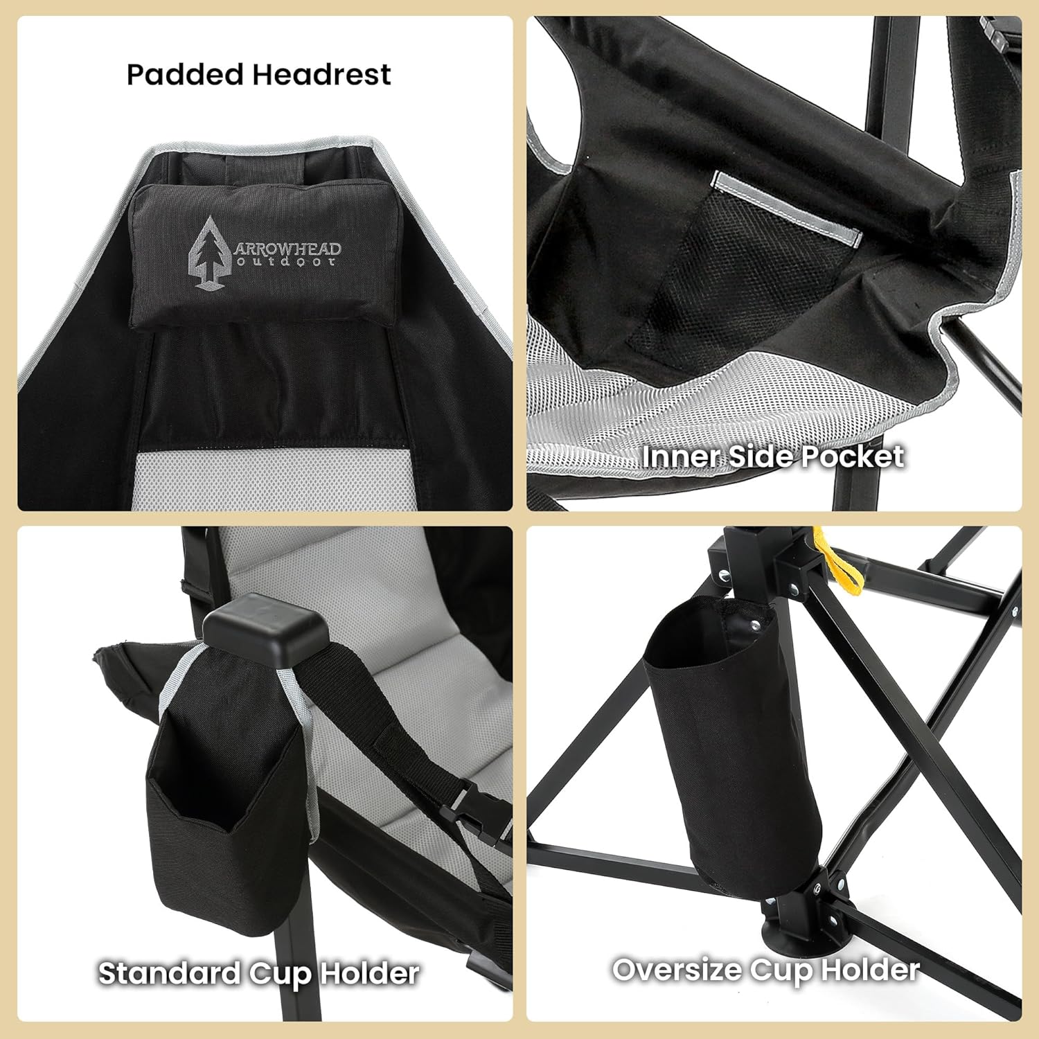 ✅ Convenient Features On‑Hand – Includes large cup holders for drinks and gear plus adjustable straps to customize your reclining angle and footrest position.