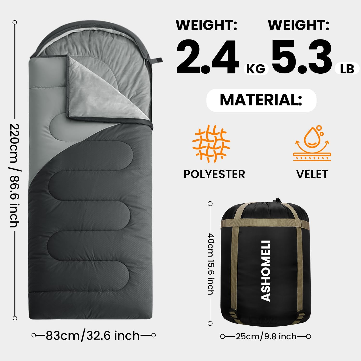 🥾 ASHOMELI Camping Sleeping Bags for Adults – 4 Season Warm & Cool Weather – Summer, Spring, Fall, Winter, Lightweight, Waterproof Sleeping Bag for Camping, Traveling, Indoors and Outdoors — Review, Key Features & Current Price