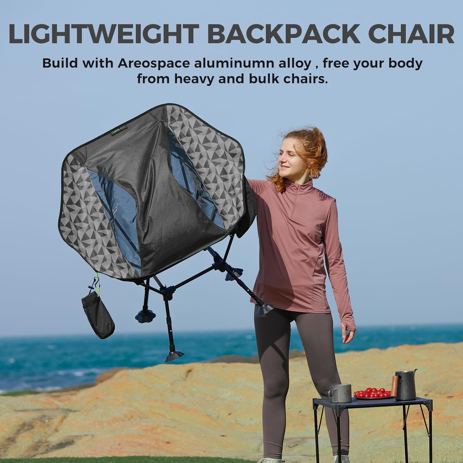 PORTABLE BACKPACK CHAIR: This chair packs down to a compact, bottle-sized design that fits easily in your backpack, with a durable carry bag for grab-and-go convenience. Built with a lightweight aerospace-grade aluminum frame, it keeps weight low while staying strong—perfect for backpacking, hiking, and any adventure where space and ounces matter. 0 lbs, offering maximum stability for a wide range of users whether you’re by the campfire or on a hiking trail