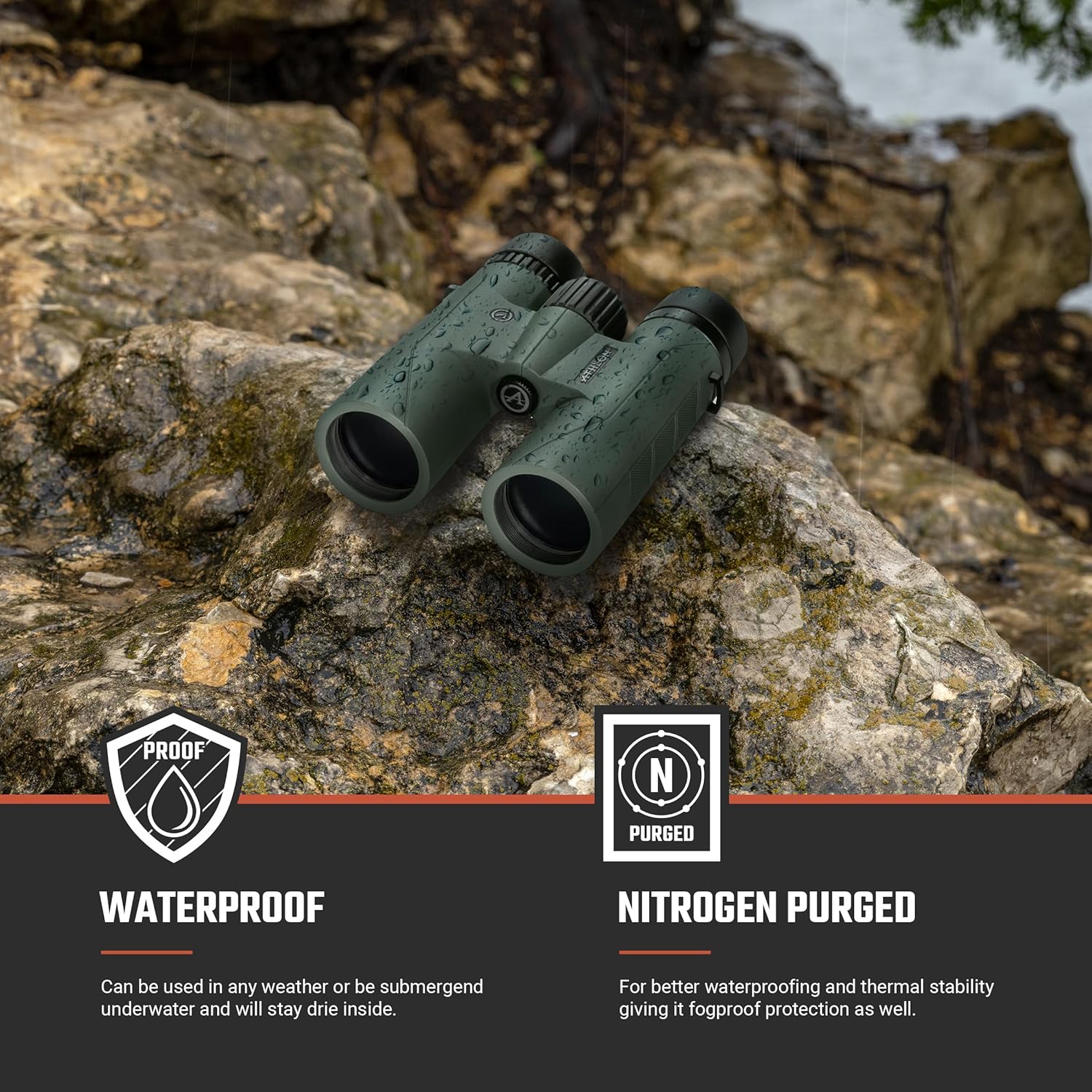 No matter how hard it pours or if accidentally dropped in water, these binoculars are sealed tight to stay completely waterproof.