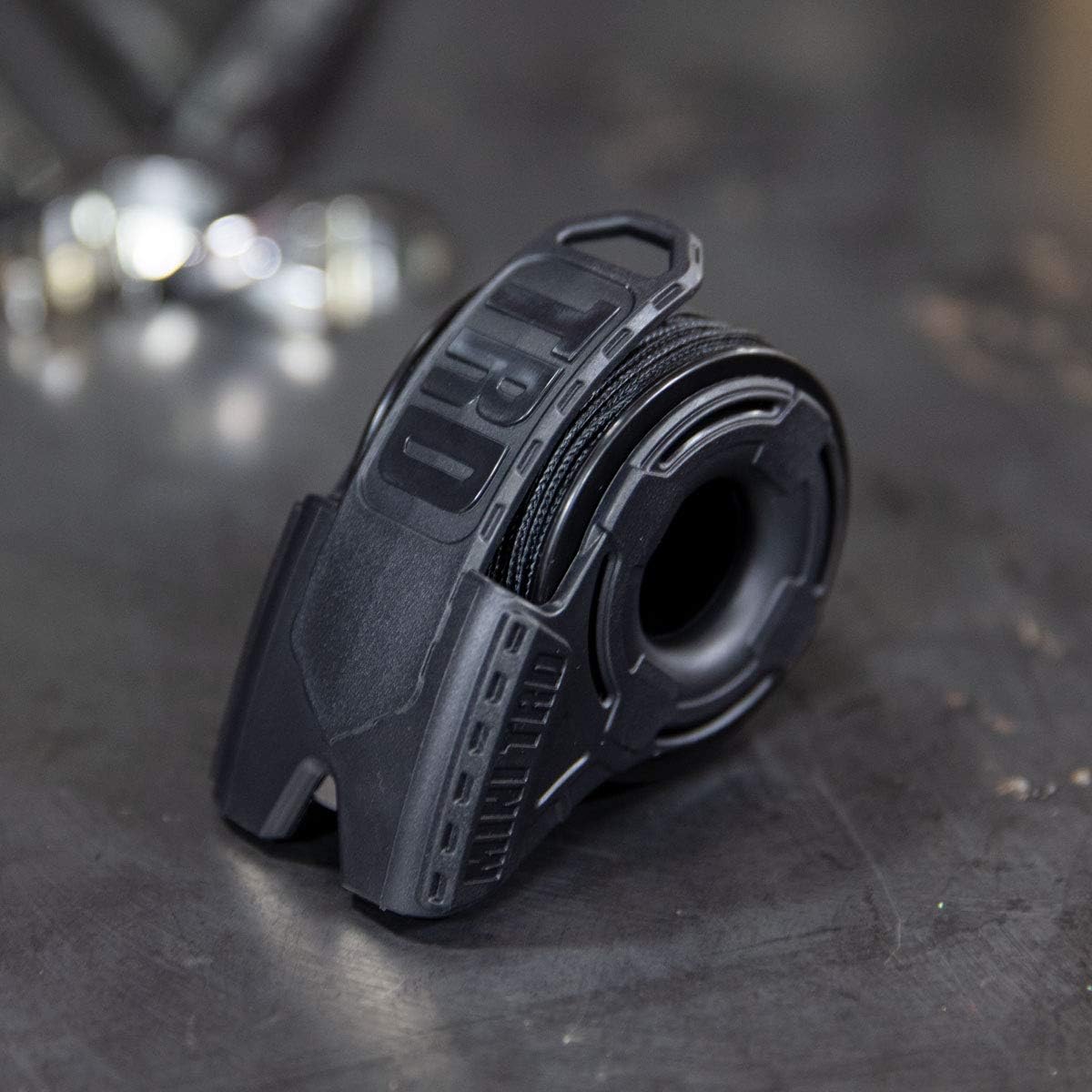 The Micro Cord Dispenser has a gear loop built in for attaching a carabiner, tether, or retractable lanyard. It has a built-in tension control lever for controlling how you need your cord.