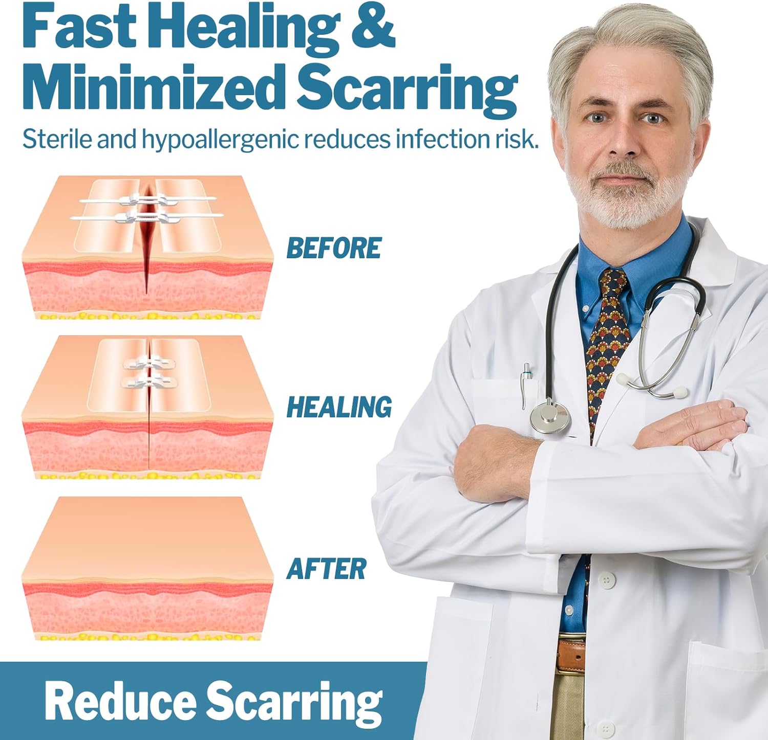Strong and Secure: This butterfly bandages for wound closure is made of hypoallergenic materials and professional adhesion, breathable and comfortable, which have high tensile strength and can reliably fix wounds, making them an excellent healing choice
