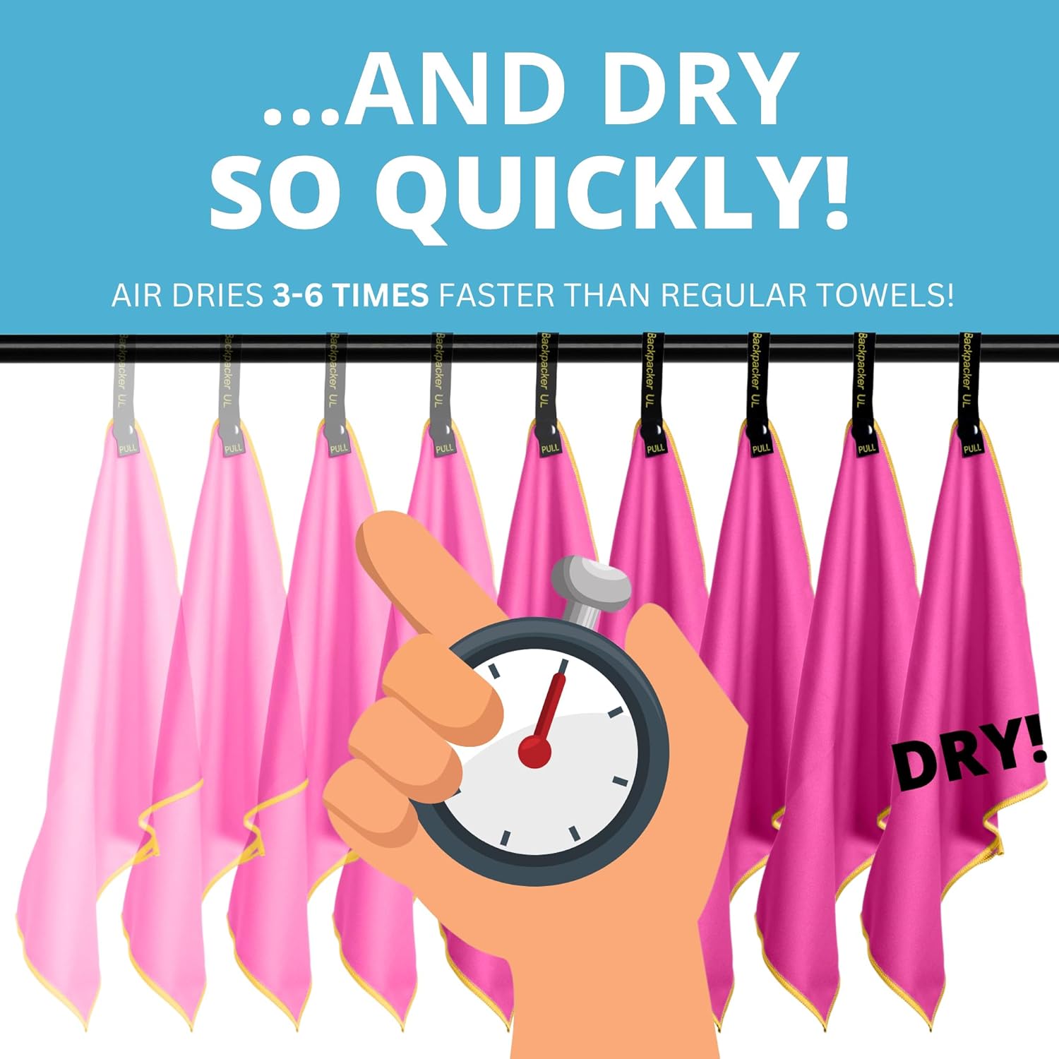 Convenient: Designed with the backpacking and hiking community in mind, this towel provides a fast, efficient and convenient solution for keeping yourself clean and dry. Say goodbye to heavy, full-size towels and embrace the convenience of the Best Quick Dry Towels for Travel. No unneccesary extra packing that you will just throw out anyways. Just hang from your pack to air dry.
