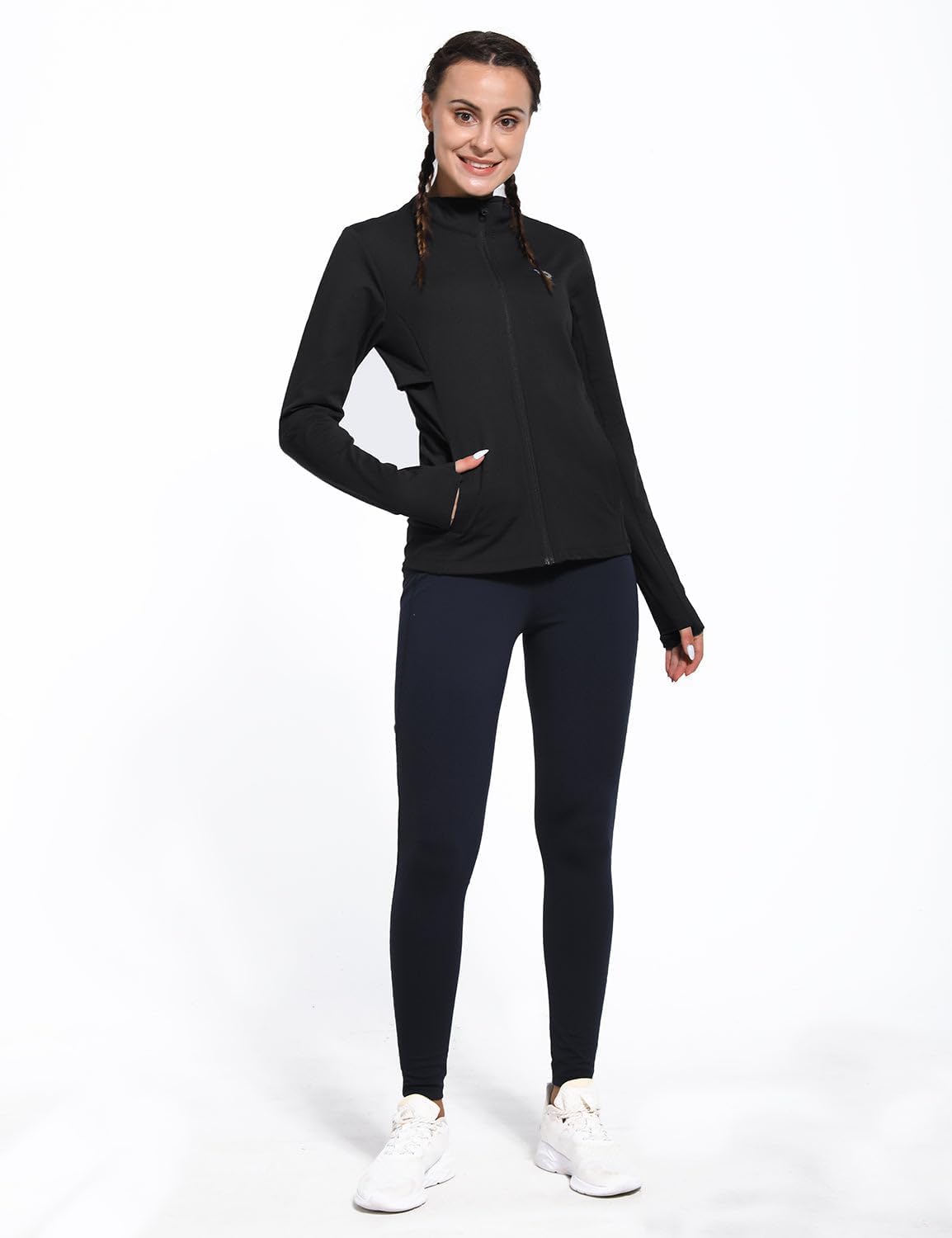 Full Zipper & Stand-up collar: This thermal running jacket has a self-locking function to keep the left zipper fixed during exercise and not easy to slip. Stand-up collar style could help you to keep warm
