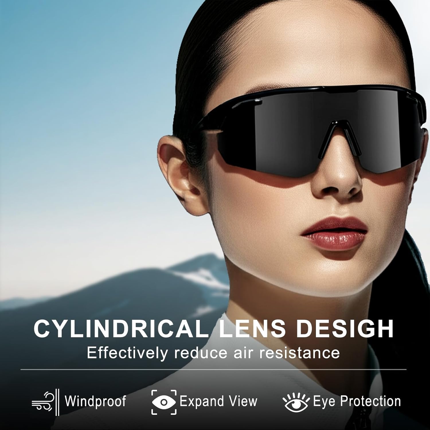 WIDE FIELD OF VIEW:Polarized sunglasses wrap-around design blends style with functionality. Curved frames provide expansive vision while effectively shielding your eyes from dust and strong winds during high-speed cycling